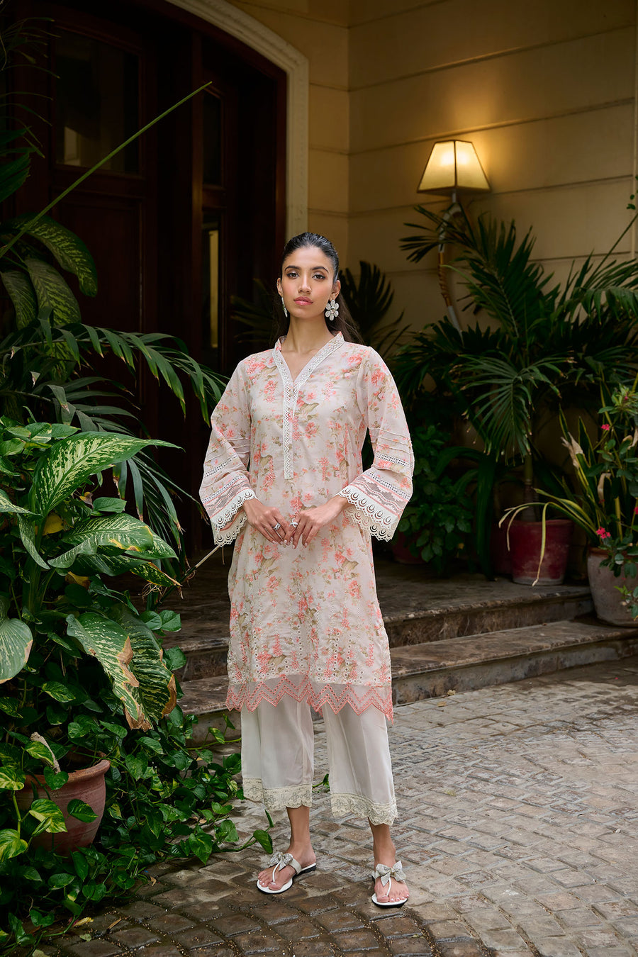 Dhanak DC-0538 Peach Casual Spring Pret 2024 Original brand suit fabric and photography lite diffrance in actual print.
