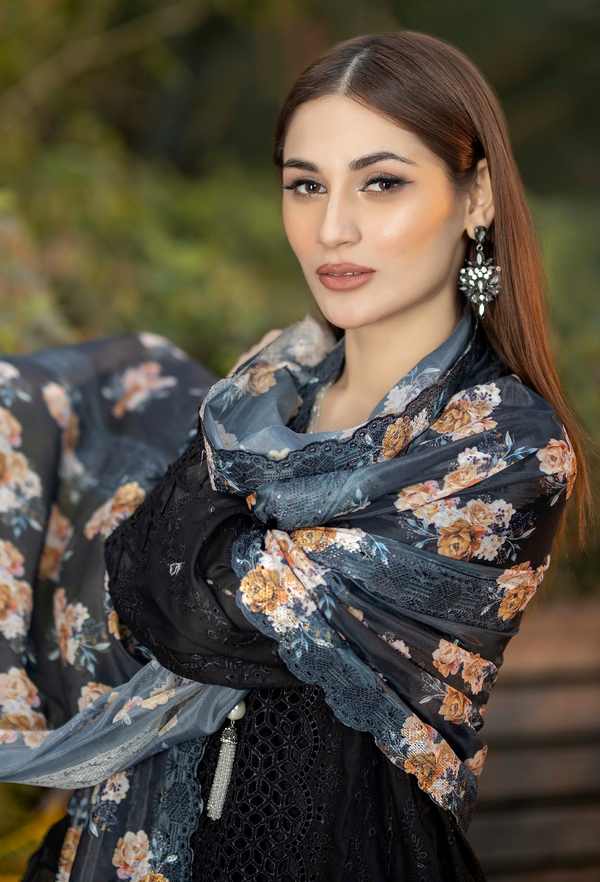 Adan Libas French Black Fuchsia Embroidered Chikankari Lawn