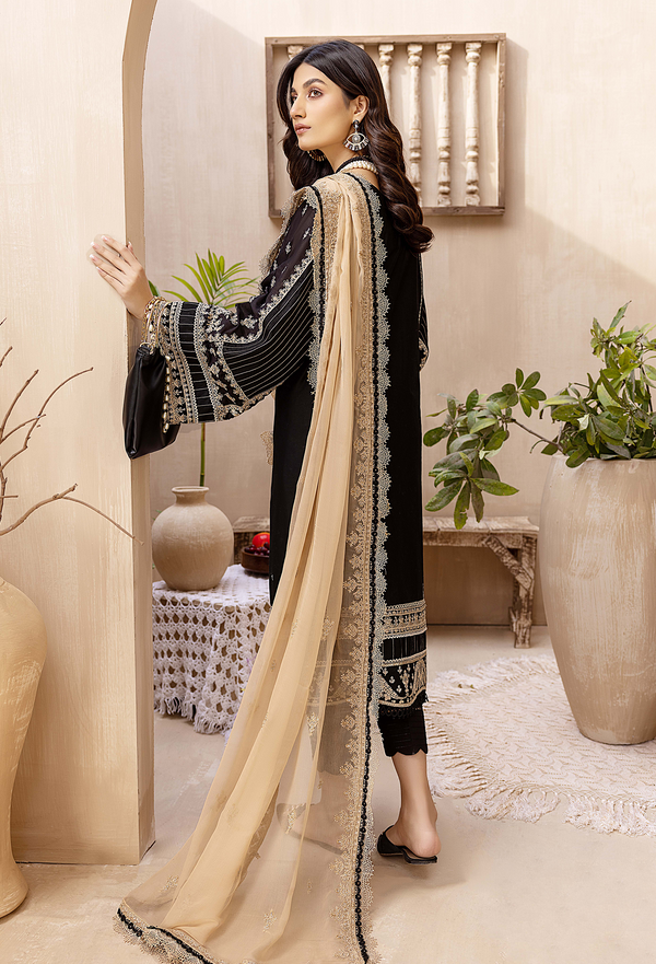 Adan Libas Pearl Black Elizabeth Embroidered Lawn