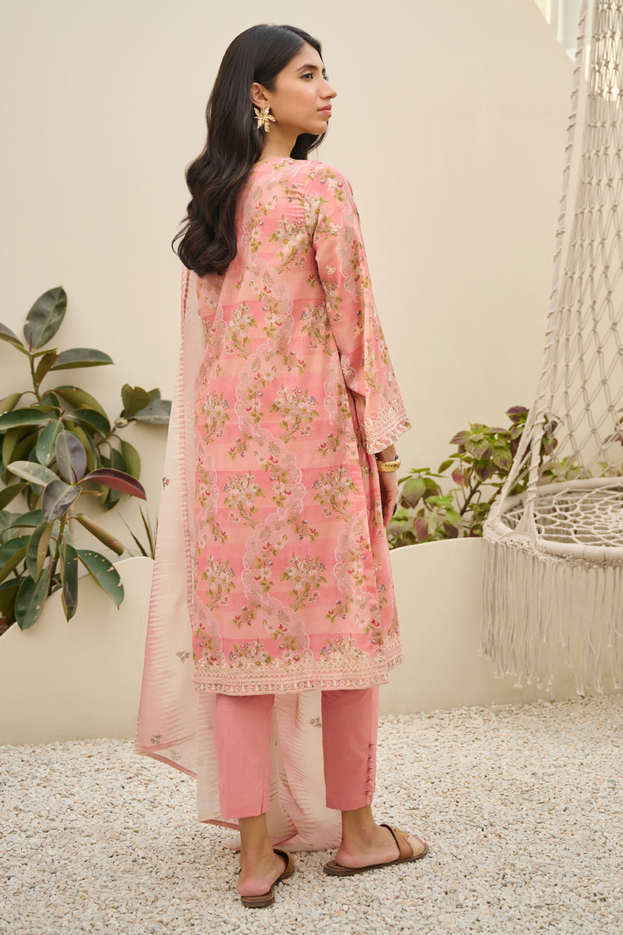 Dhanak DU-3141 Peach Summer Basics Embroidered Lawn