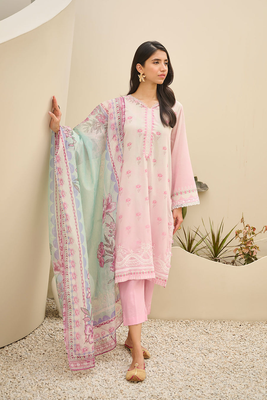 Dhanak DU-3143 Pink Summer Basics Embroidered Lawn Original brand suit fabric and photography lite diffrance in actual print.