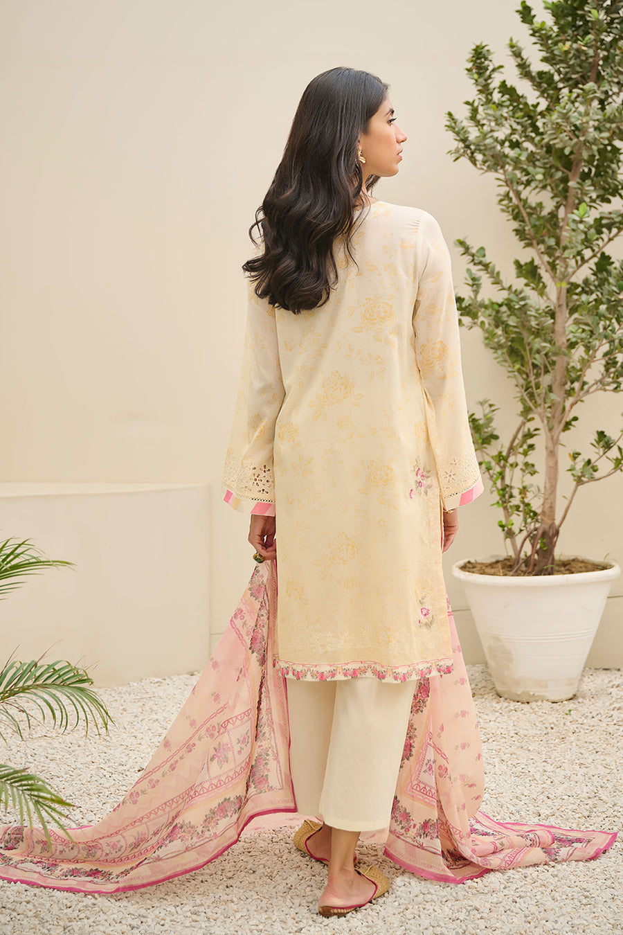 Dhanak DU-3145 Cream Yellow Summer Basics Embroidered Lawn