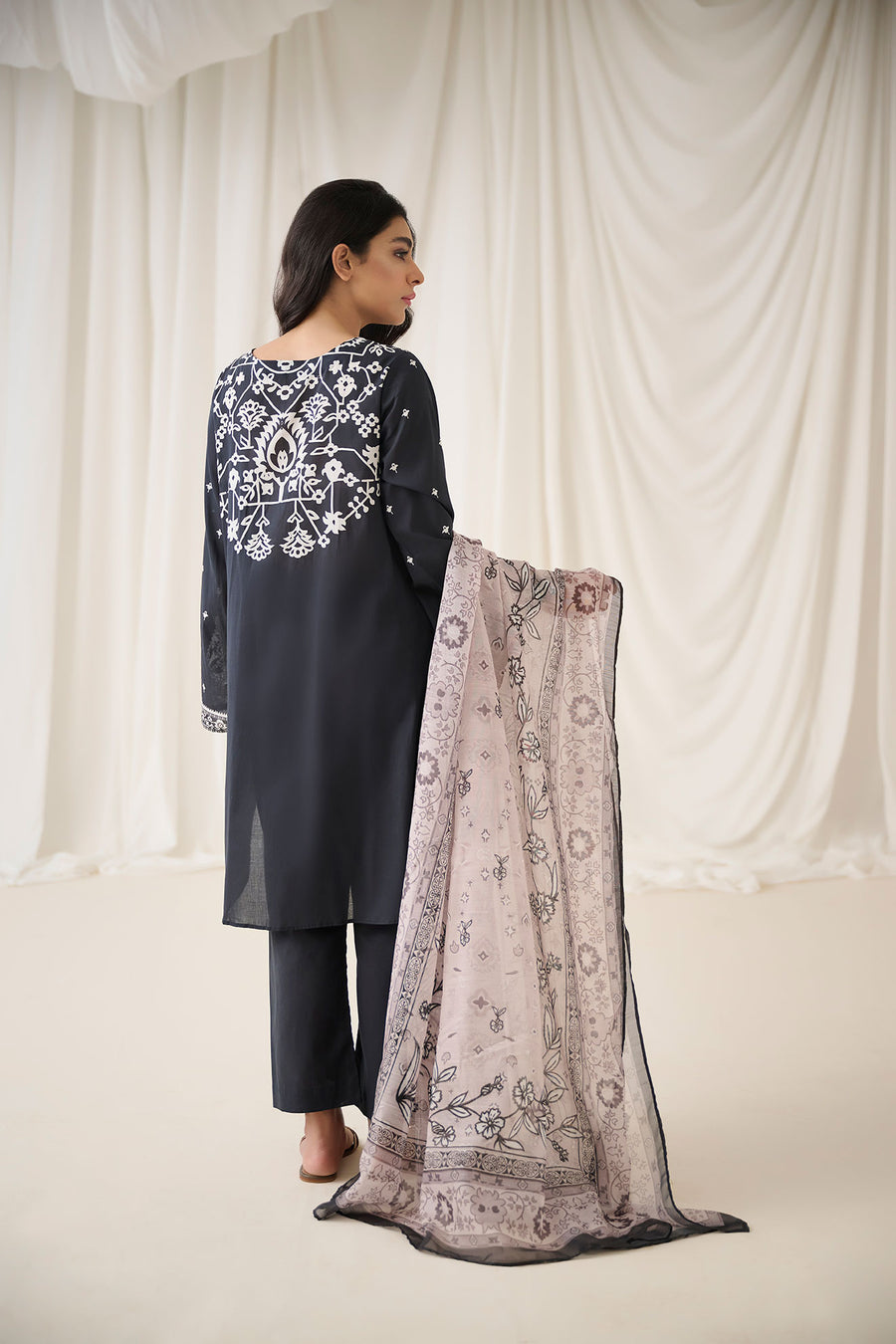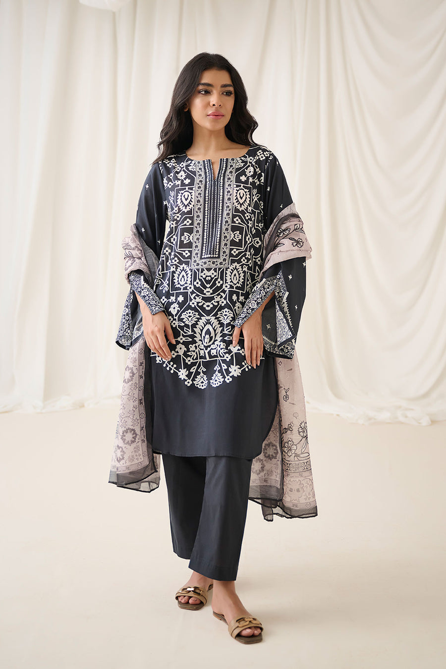 Dhanak DU-3157 Black Printed Lawn - 3pcs Monochrome Collection