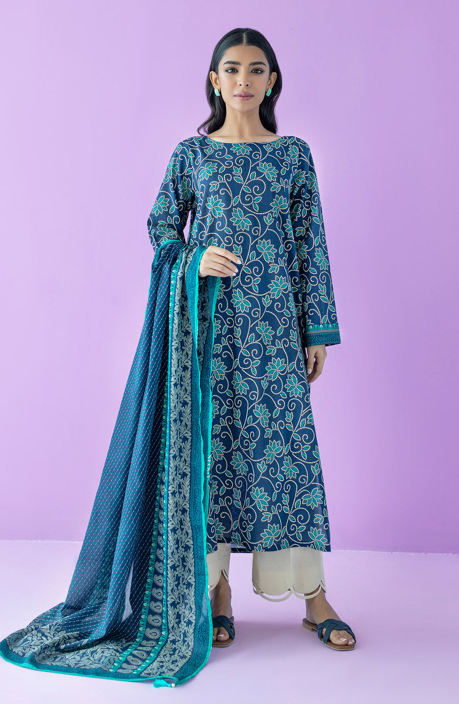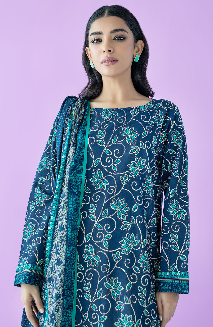 Orient NRDS-23-104-U-Navy Monochrome Printed Lawn Collection Original brand suit fabric and photography lite diffrance in actual print.