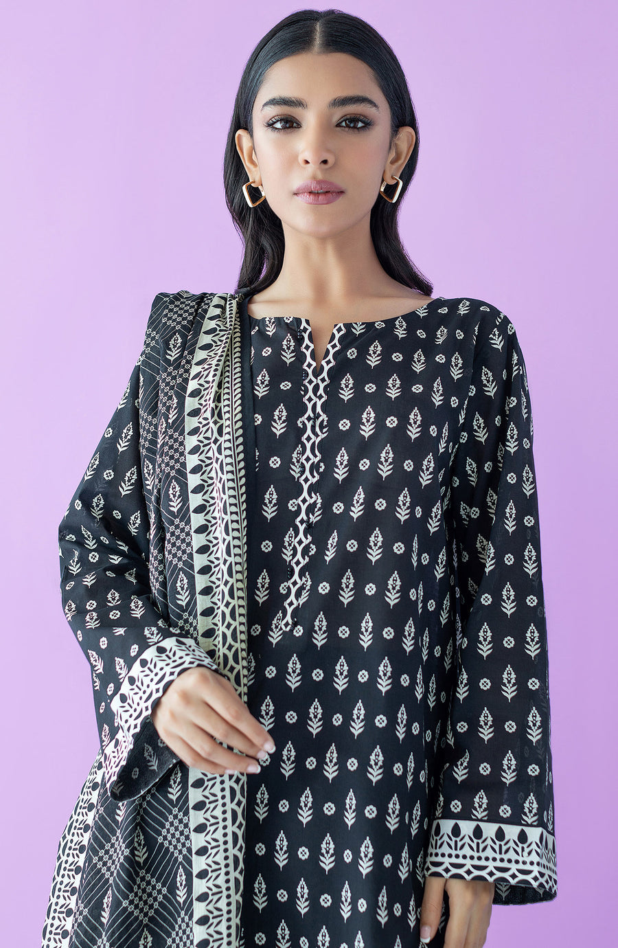 Orient NRDS-23-116-U-Black Monochrome Printed Lawn Collection Original brand suit fabric and photography lite diffrance in actual print.