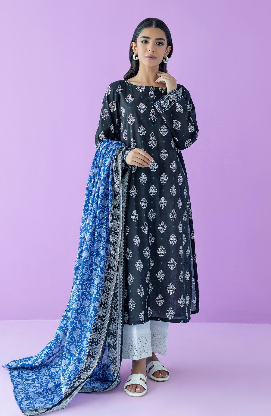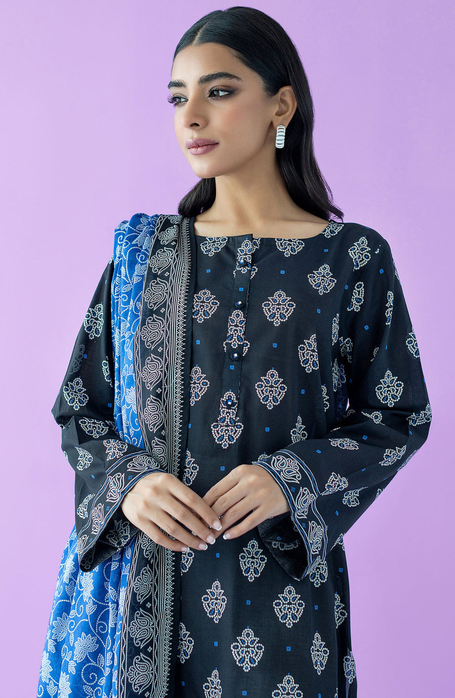Orient NRDS-23-117-U-Black Monochrome Printed Lawn Collection Original brand suit fabric and photography lite diffrance in actual print.