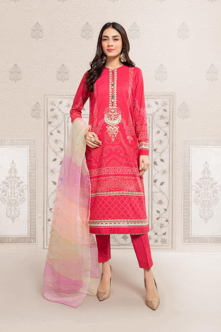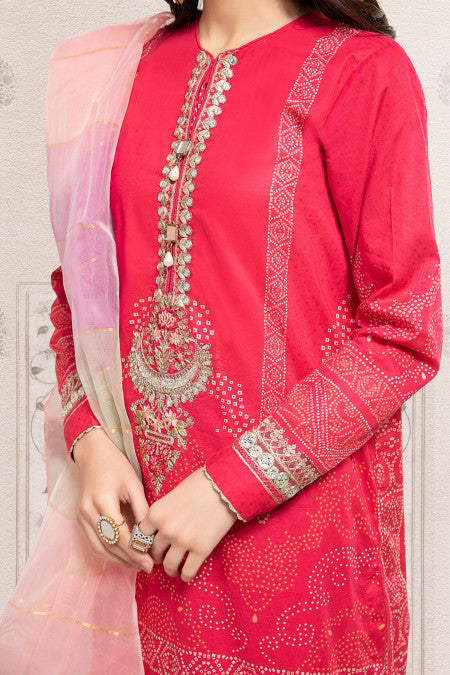 Maria B Pink DW-EF22-50 Casual Lawn Prets 2022 Original brand suit fabric and photography lite diffrance in actual print.