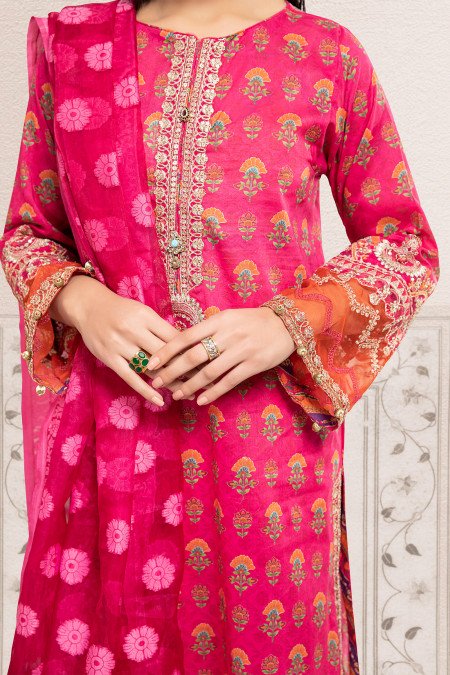 Maria B Pink DW-EF22-61 Casual Lawn Prets 2022 Original brand suit fabric and photography lite diffrance in actual print.