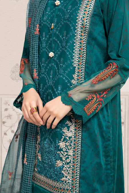 Maria B Teal DW-EF22-11 Casual Lawn Prets 2022 Original brand suit fabric and photography lite diffrance in actual print.