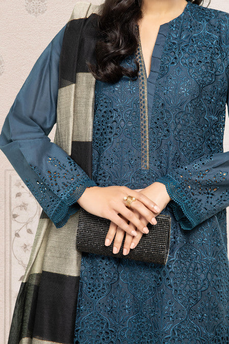 Maria B Teal DW-EF22-41 Casual Lawn Prets 2022 Original brand suit fabric and photography lite diffrance in actual print.