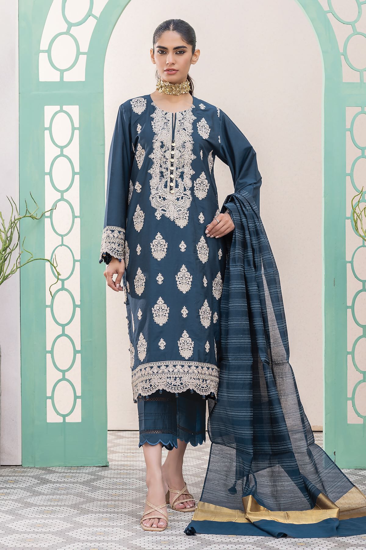 Khaadi Dull Raw Silk | BDS240204 Navy Signature Collection 2024 Original brand suit fabric and photography lite diffrance in actual print.