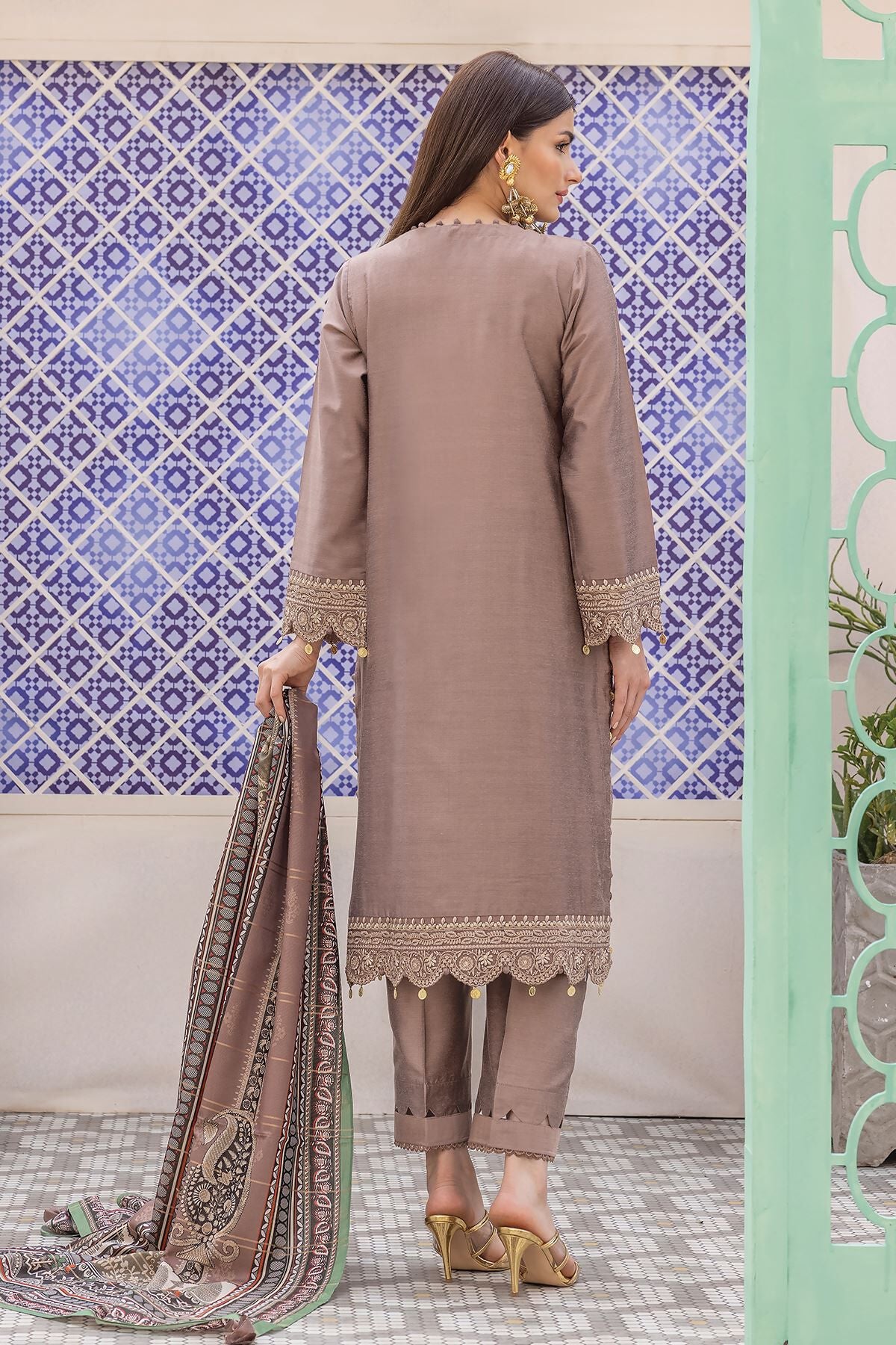 Khaadi Dull Raw Silk | BDS240205 Brown Signature Collection 2024 Original brand suit fabric and photography lite diffrance in actual print.