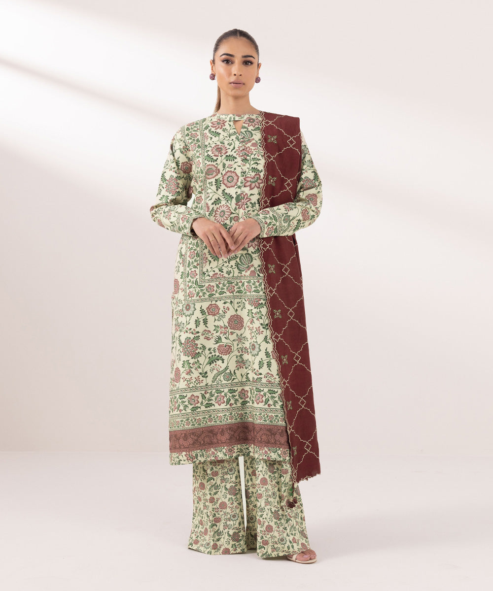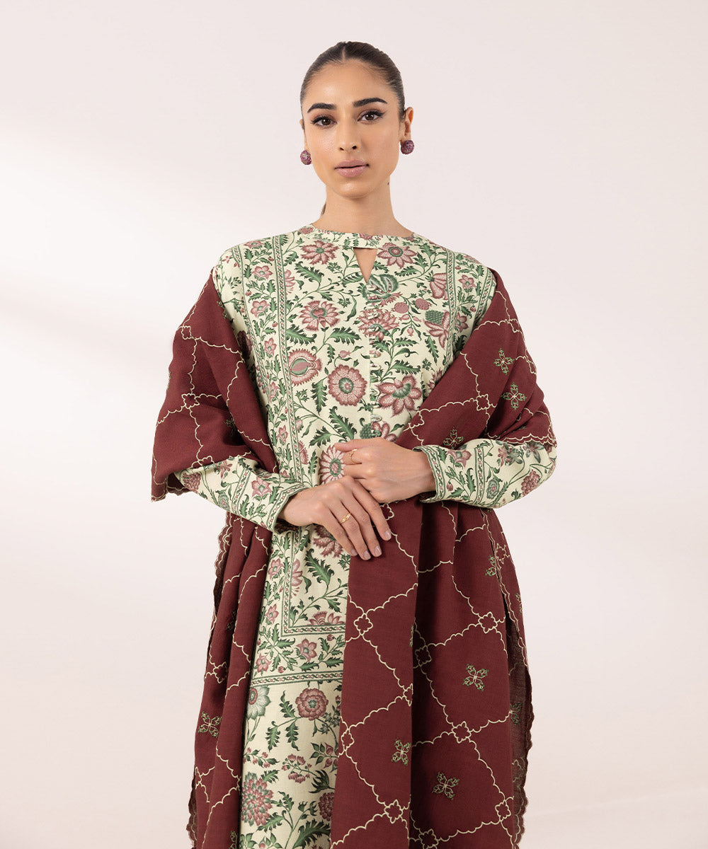 3 Piece Embroidered Dull Raw Silk Suit 3PESG24V56UC-45529