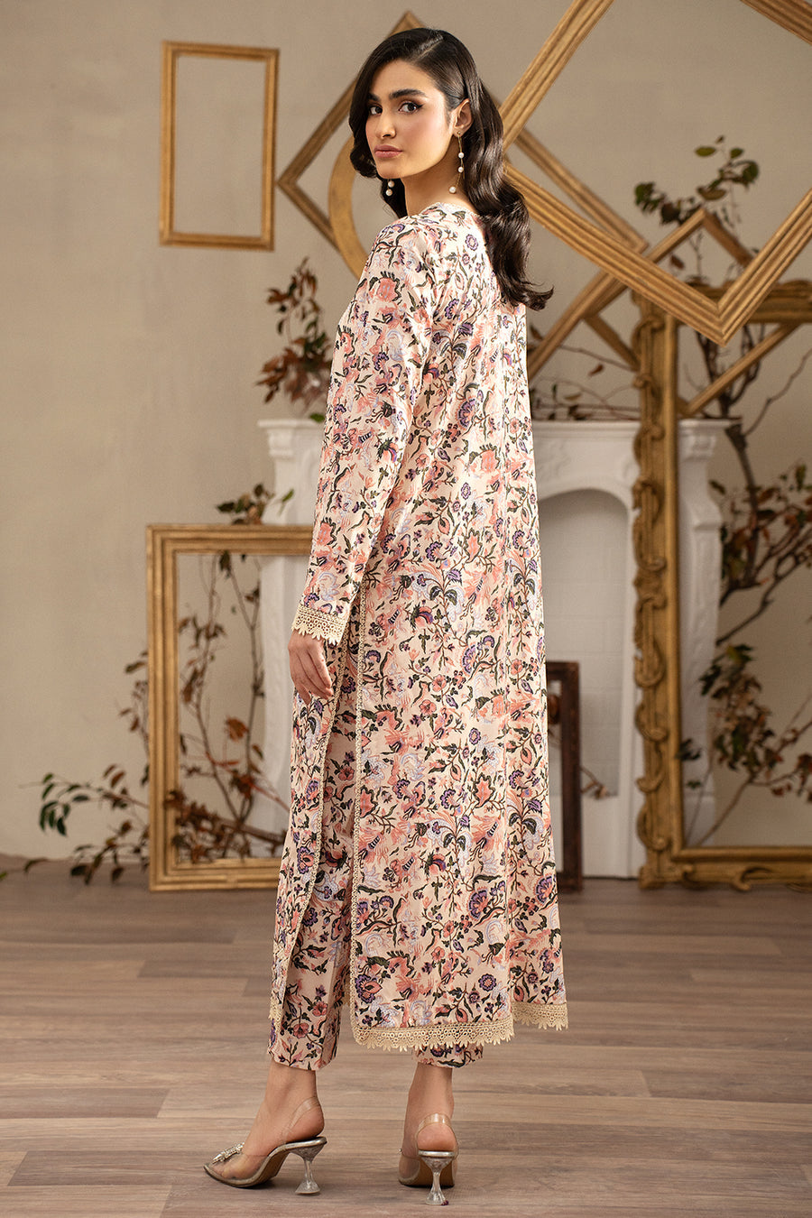 Zarif Hannah Printed Geogette Silk Original brand suit fabric and photography lite diffrance in actual print.