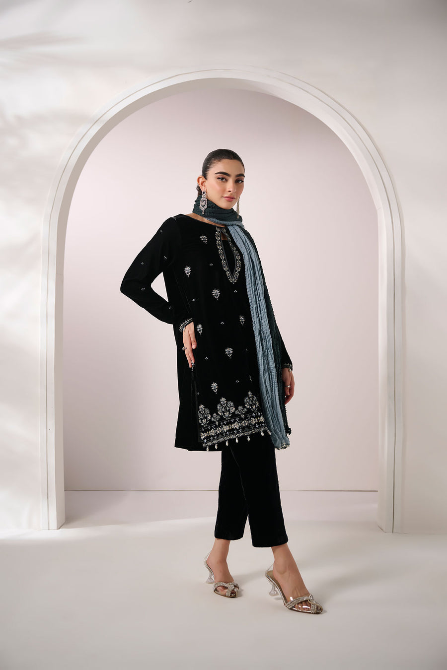 Dhanak a renowned Pakistani fashion brand, has consistently captivated the hearts of fashion enthusiasts with its exquisite designs and impeccable craftsmanship. One such masterpiece that has garnered immense admiration is the FW24DA-2605 Black Velvet Stitched. This elegant ensemble, crafted from premium quality Velvet fabric is a testament to Dhanak commitment to timeless style and comfort.