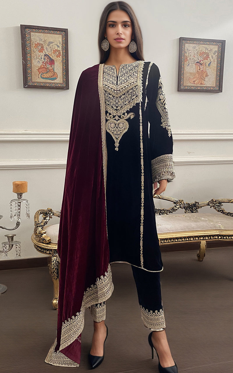 Thread & Motifz a renowned Pakistani fashion brand, has consistently captivated the hearts of fashion enthusiasts with its exquisite designs and impeccable craftsmanship. One such masterpiece that has garnered immense admiration is the Ready To Wear 3pc Suit 67 Velvet Stitched. This elegant ensemble, crafted from premium quality Velvet fabric is a testament to Thread & Motifz commitment to timeless style and comfort.