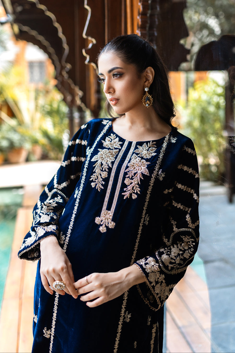 Azure Canterbury Bells 3 Velvet WinterCollection Original brand suit fabric and photography lite diffrance in actual print.