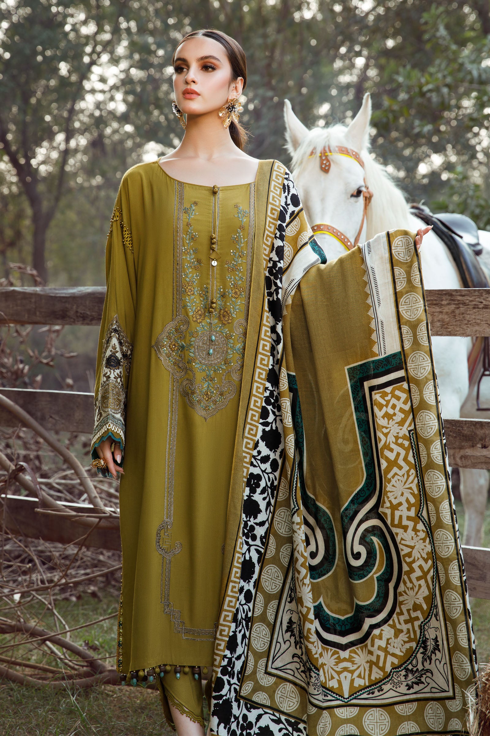 Maria B MPT-1605-A MPrint Winter Wool Shawl