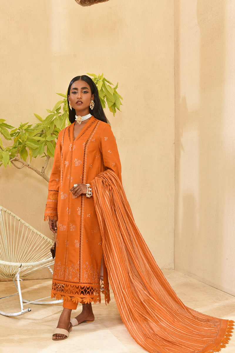Qalamkar KP-04 Amelia Winter Pret Original brand suit fabric and photography lite diffrance in actual print.