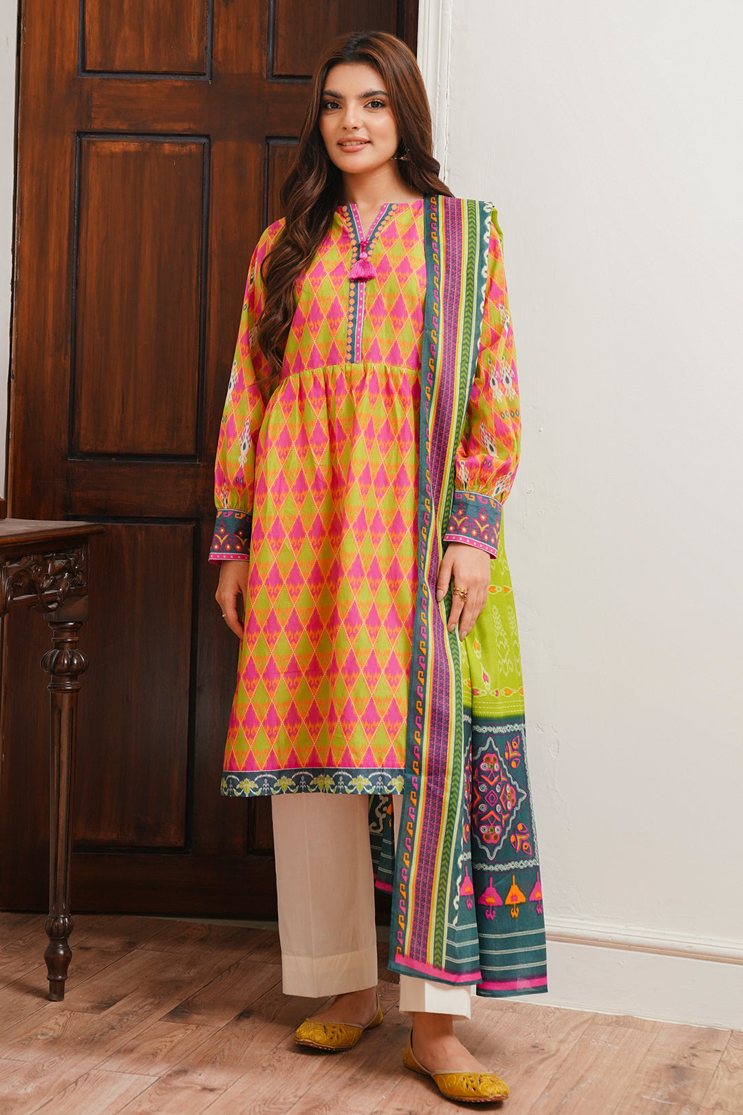 Zellbury Design # 0090 Cotton Unstitched is typically part of the brand's Cambric, a highly anticipated annual release that showcases the latest trends and designs. The Cambric is renowned for its festive and vibrant aesthetic, and the Design # 0090 embodies this spirit perfectly.