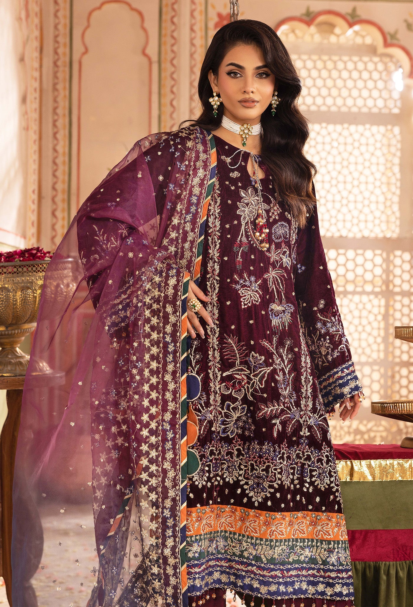 Adan Libas Velvet 7520 Velvet Unstitched is typically part of the brand's Velvet, a highly anticipated annual release that showcases the latest trends and designs. The Velvet is renowned for its festive and vibrant aesthetic, and the Velvet 7520 embodies this spirit perfectly.
