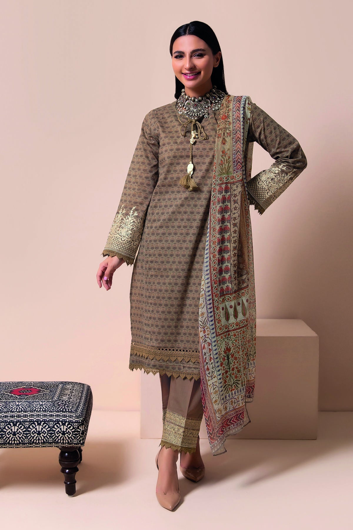 B22112 Brown Khaadi Online Spring Summer is Original Ladies Clothing Brand, and provides both Styles shalwar kameez suits and kurtis.