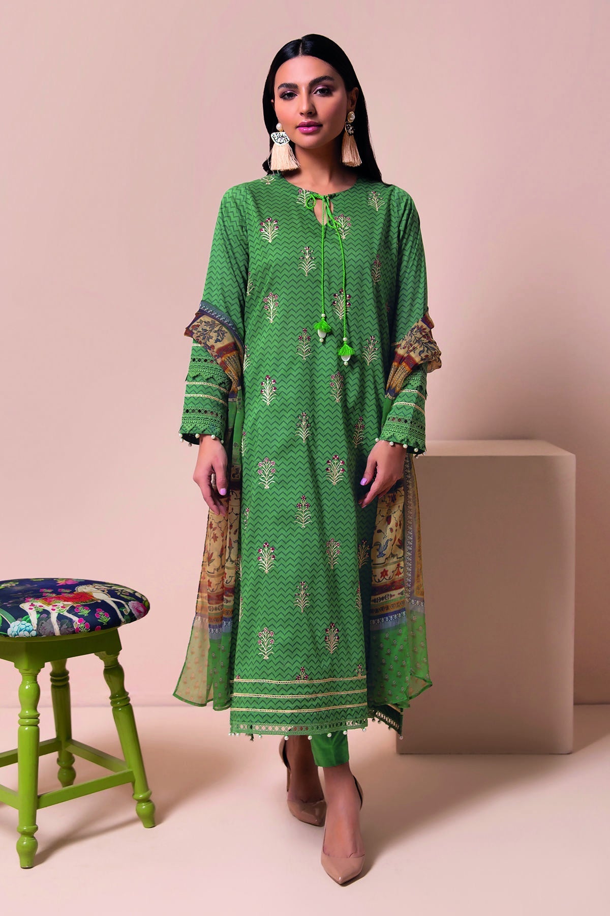 B22114 Green Khaadi Online Spring Summer is Original Ladies Clothing Brand, and provides both Styles shalwar kameez suits and kurtis.