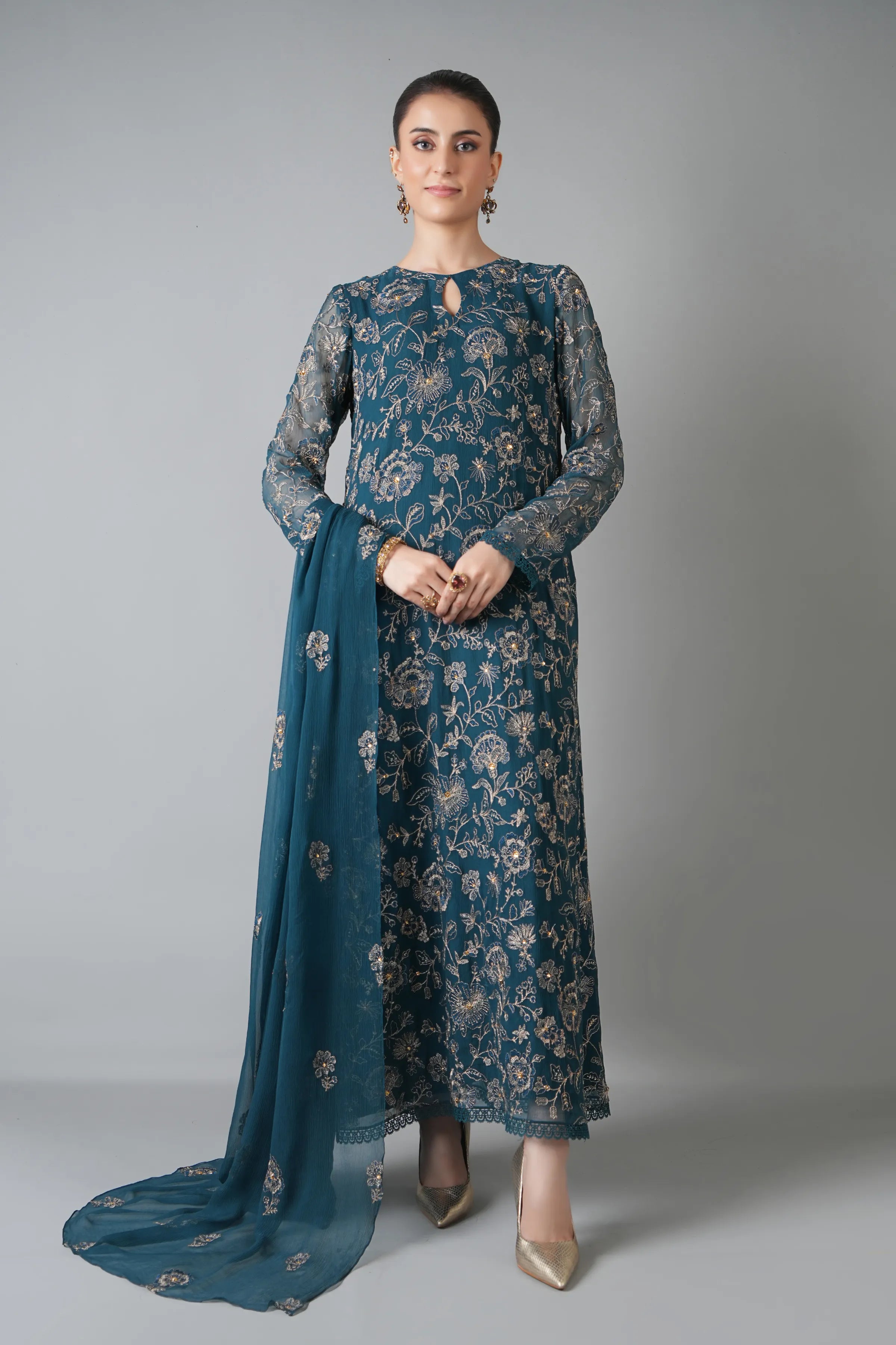 Bareeze Golden Embers Chiffon Unstitched is typically part of the brand's Winter Formal Collection, a highly anticipated annual release that showcases the latest trends and designs. The Winter Formal Collection is renowned for its festive and vibrant aesthetic, and the Golden Embers embodies this spirit perfectly.