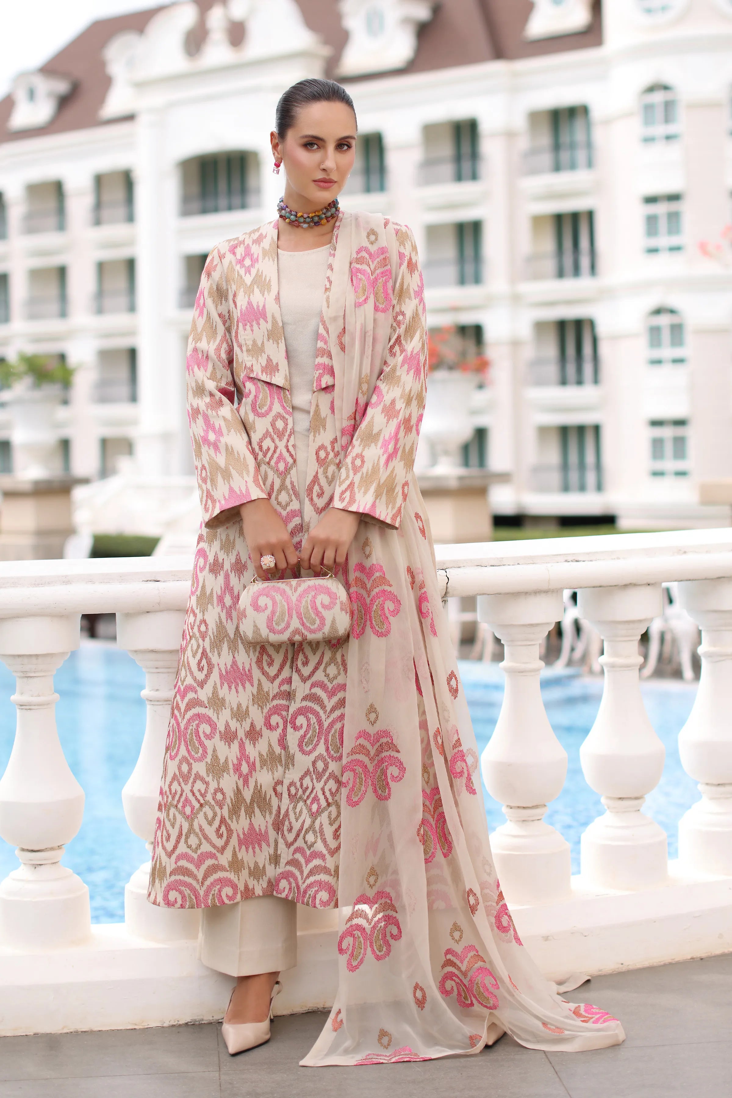 Bareeze Ikat-01 Karandi Unstitced is typically part of the brand's Winter Casual Collection, a highly anticipated annual release that showcases the latest trends and designs. The Winter Casual Collection is renowned for its festive and vibrant aesthetic, and the Ikat-01 embodies this spirit perfectly.