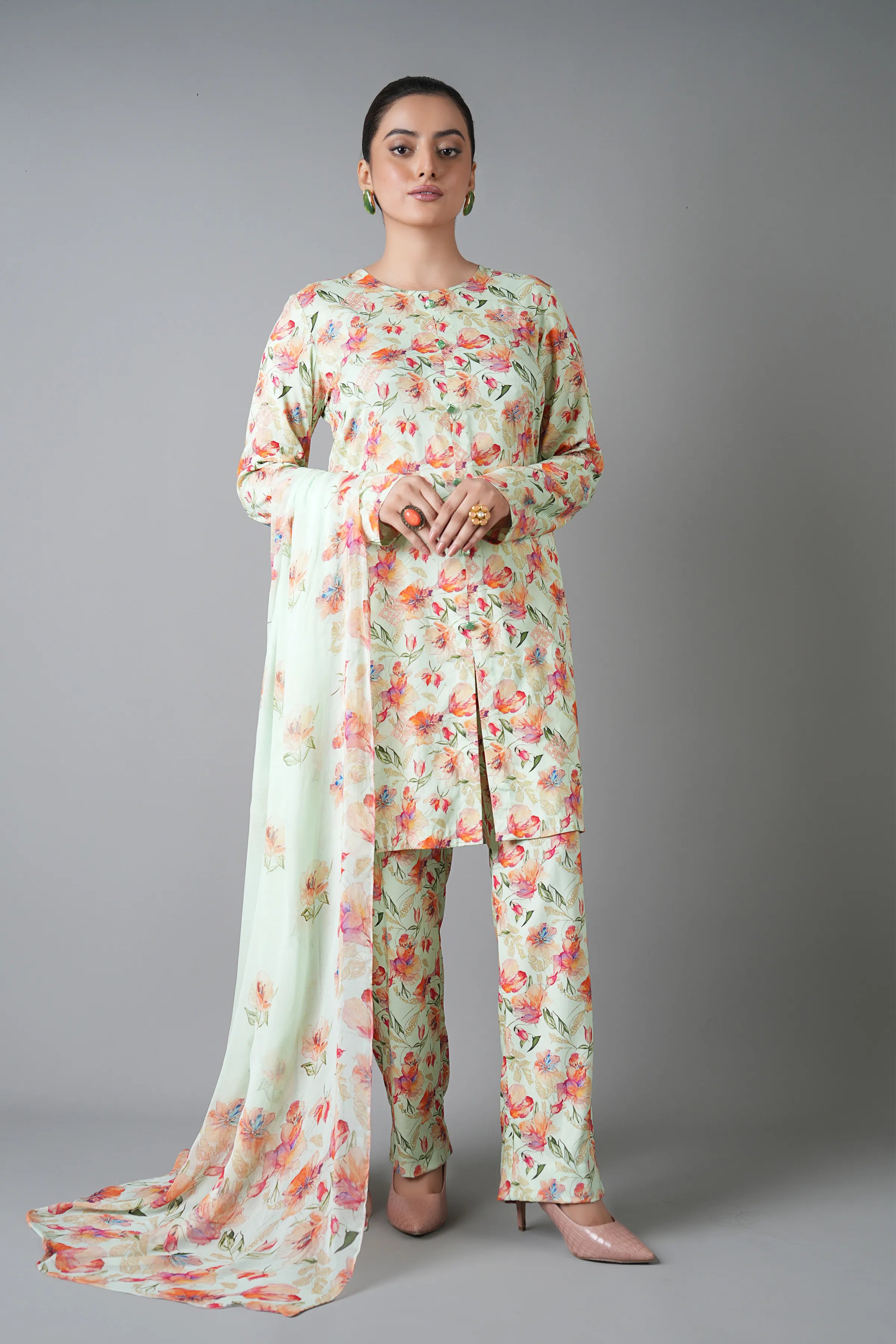 The Printed-2111 Karandi Unstitched features a captivating blend of traditional and contemporary elements. The intricate embroidery, meticulously executed with delicate threads, adds a touch of sophistication to the design. The vibrant colors and patterns used in the embroidery create a visually stunning effect, making the ensemble perfect for special occasions. The silhouette of the Printed-2111 is both flattering and comfortable, ensuring that the wearer feels confident and graceful. The Karandi fabric, known for its breathability and softness, provides a luxurious feel against the skin, making it ideal for the warmer months.