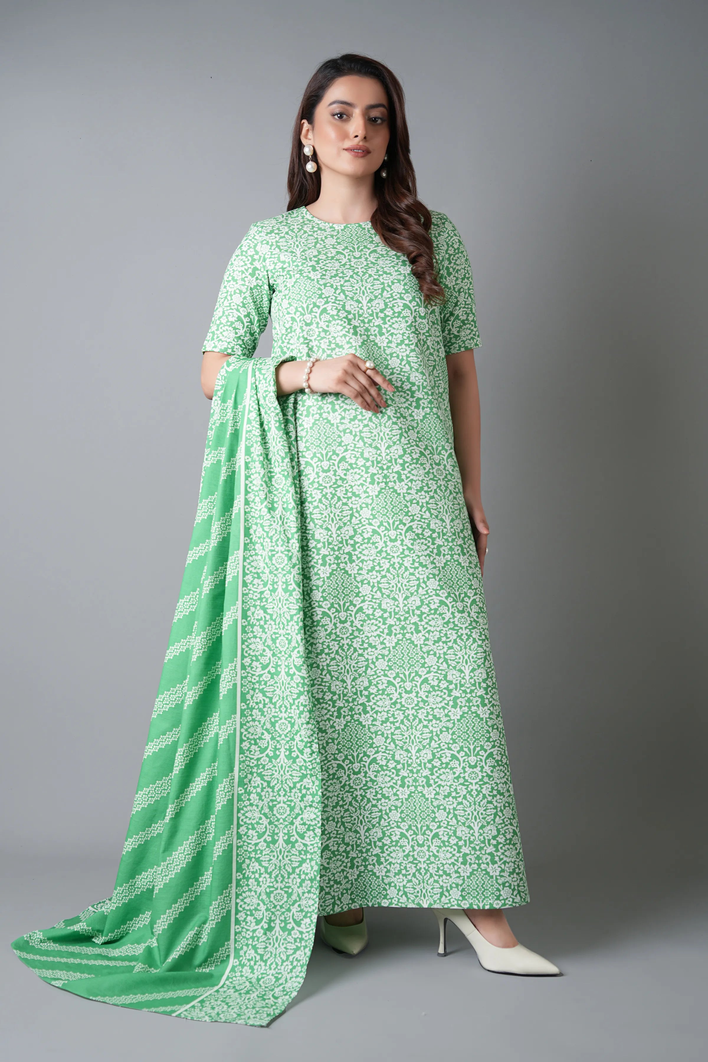 The Printed-2161 Karandi Unstitched features a captivating blend of traditional and contemporary elements. The intricate embroidery, meticulously executed with delicate threads, adds a touch of sophistication to the design. The vibrant colors and patterns used in the embroidery create a visually stunning effect, making the ensemble perfect for special occasions. The silhouette of the Printed-2161 is both flattering and comfortable, ensuring that the wearer feels confident and graceful. The Karandi fabric, known for its breathability and softness, provides a luxurious feel against the skin, making it ideal for the warmer months.