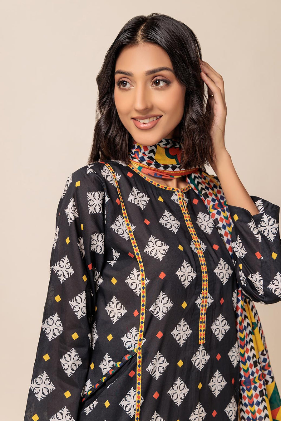 Bonanza Satrangi Block Print Lawn Collection Vol 1 Original brand suit fabric and photography lite diffrance in actual print.