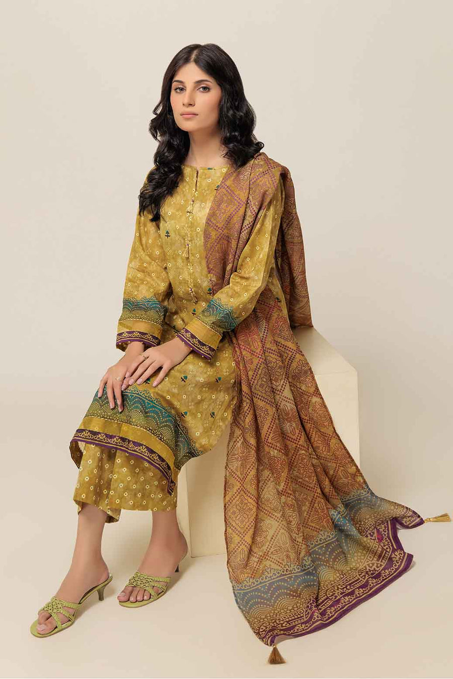 Bonanza Satrangi Blooming Chunri Lawn Collection Vol 1 Original brand suit fabric and photography lite diffrance in actual print.