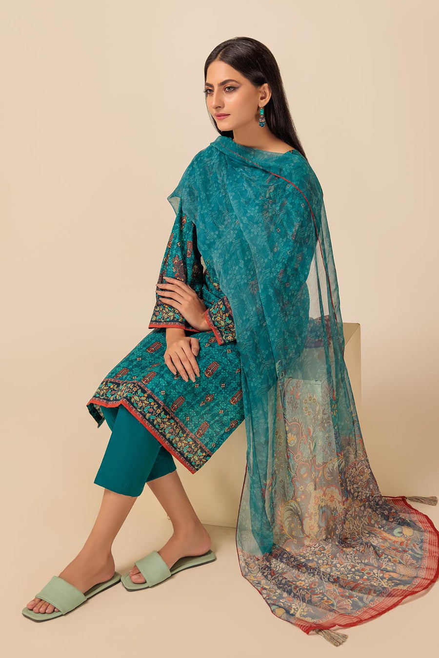 Bonanza Satrangi Folk Caviar Lawn Collection Vol 1 Original brand suit fabric and photography lite diffrance in actual print.