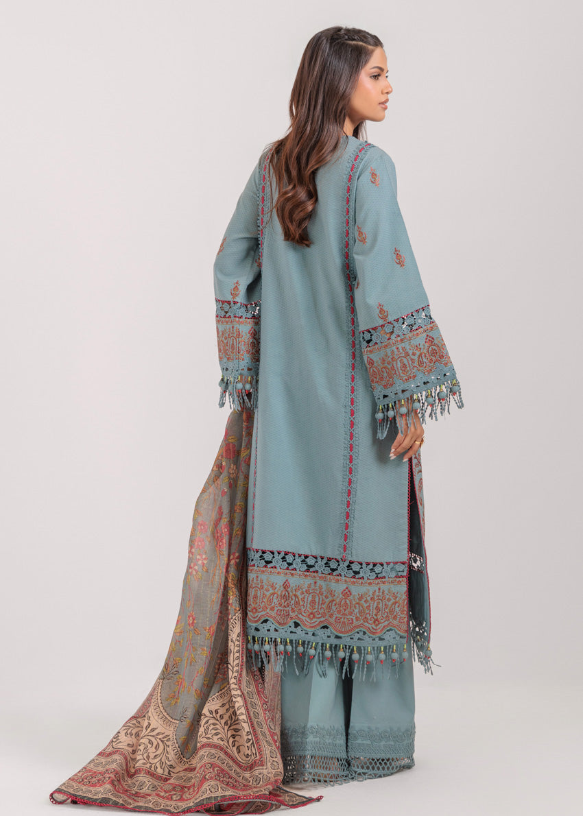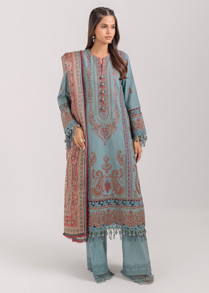 The Ruby - 3 Pc WUS25DE3155 Khaddar Unstitched features a captivating blend of traditional and contemporary elements. The intricate embroidery, meticulously executed with delicate threads, adds a touch of sophistication to the design. The vibrant colors and patterns used in the embroidery create a visually stunning effect, making the ensemble perfect for special occasions. The silhouette of the Ruby - 3 Pc WUS25DE3155 is both flattering and comfortable, ensuring that the wearer feels confident and graceful. The Khaddar fabric, known for its breathability and softness, provides a luxurious feel against the skin, making it ideal for the warmer months.