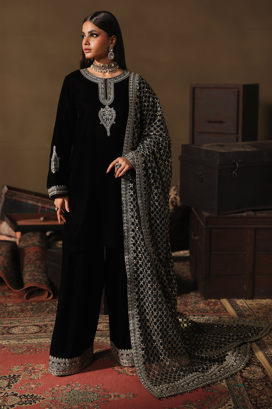 Charizma a renowned Pakistani fashion brand, has consistently captivated the hearts of fashion enthusiasts with its exquisite designs and impeccable craftsmanship. One such masterpiece that has garnered immense admiration is the VVT-5-04 Velvet Stitched. This elegant ensemble, crafted from premium quality Velvet fabric is a testament to Charizma commitment to timeless style and comfort.