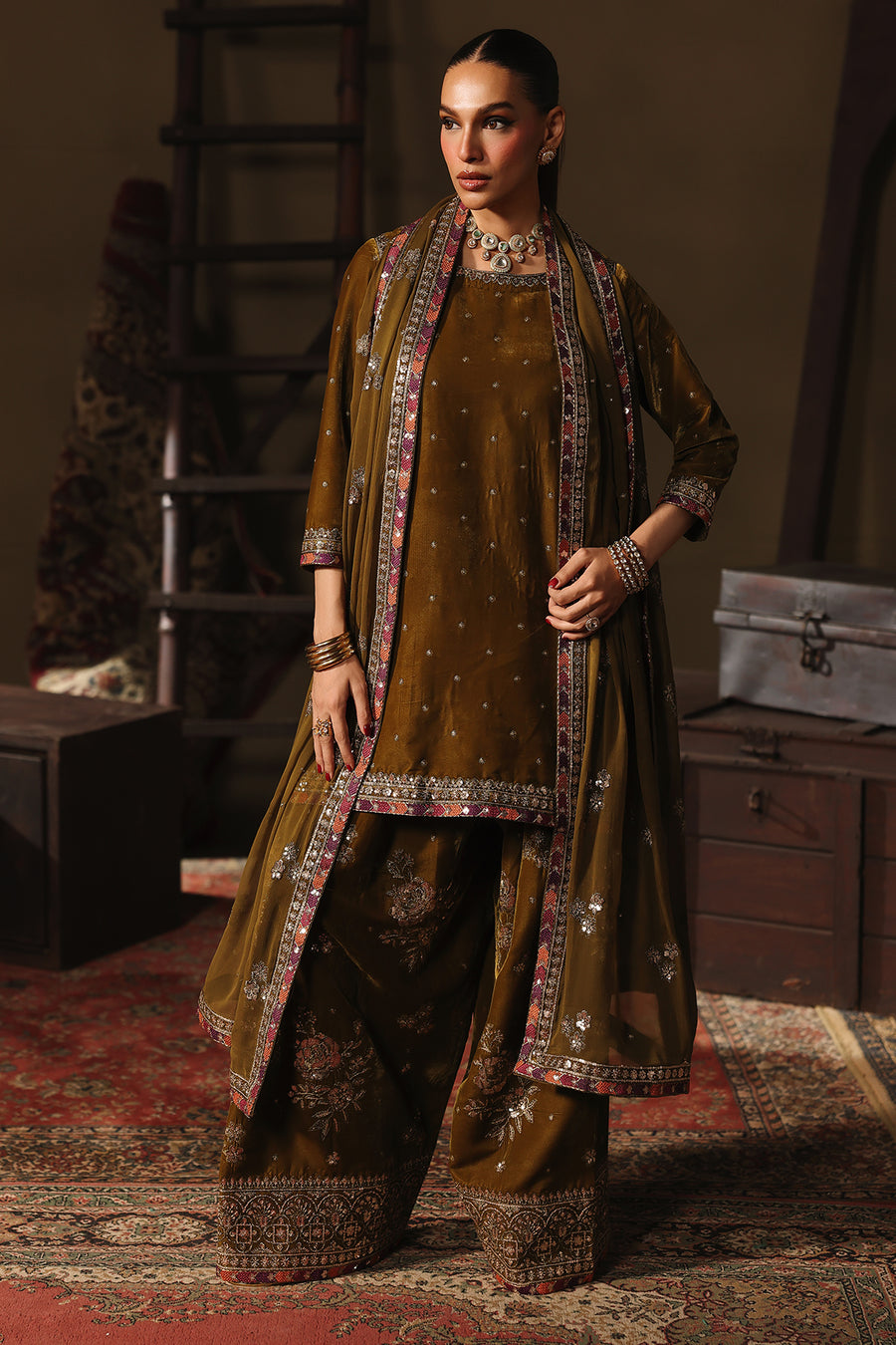Charizma a renowned Pakistani fashion brand, has consistently captivated the hearts of fashion enthusiasts with its exquisite designs and impeccable craftsmanship. One such masterpiece that has garnered immense admiration is the VVT-5-13 Velvet Stitched. This elegant ensemble, crafted from premium quality Velvet fabric is a testament to Charizma commitment to timeless style and comfort.