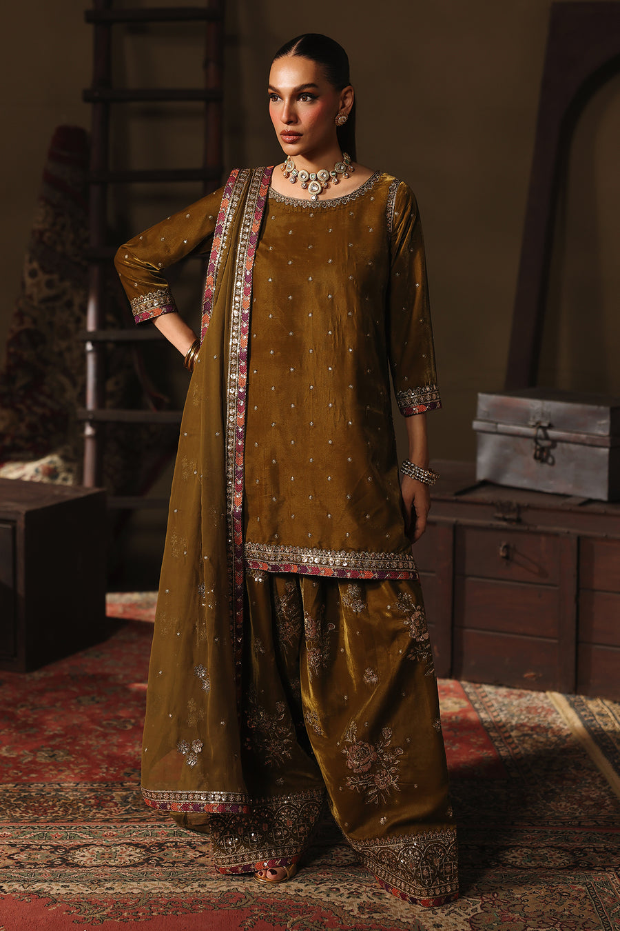 Charizma a renowned Pakistani fashion brand, has consistently captivated the hearts of fashion enthusiasts with its exquisite designs and impeccable craftsmanship. One such masterpiece that has garnered immense admiration is the VVT-5-13 Velvet Stitched. This elegant ensemble, crafted from premium quality Velvet fabric is a testament to Charizma commitment to timeless style and comfort.