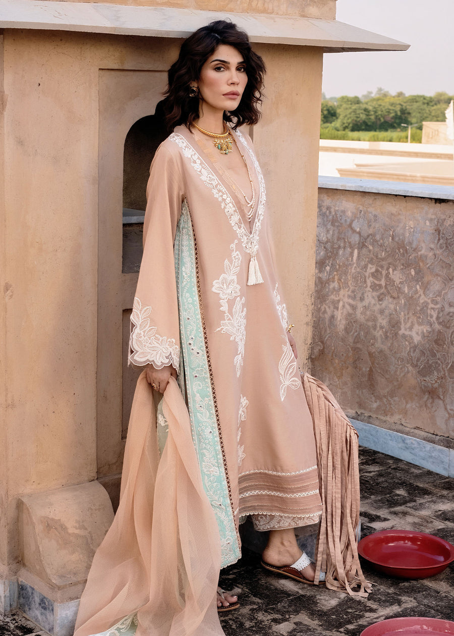 The Nawabi Notes Karandi Stitched features a captivating blend of traditional and contemporary elements. The intricate embroidery, meticulously executed with delicate threads, adds a touch of sophistication to the design. The vibrant colors and patterns used in the embroidery create a visually stunning effect, making the ensemble perfect for special occasions. The silhouette of the Nawabi Notes is both flattering and comfortable, ensuring that the wearer feels confident and graceful. The Karandi fabric, known for its breathability and softness, provides a luxurious feel against the skin, making it ideal for the warmer months.