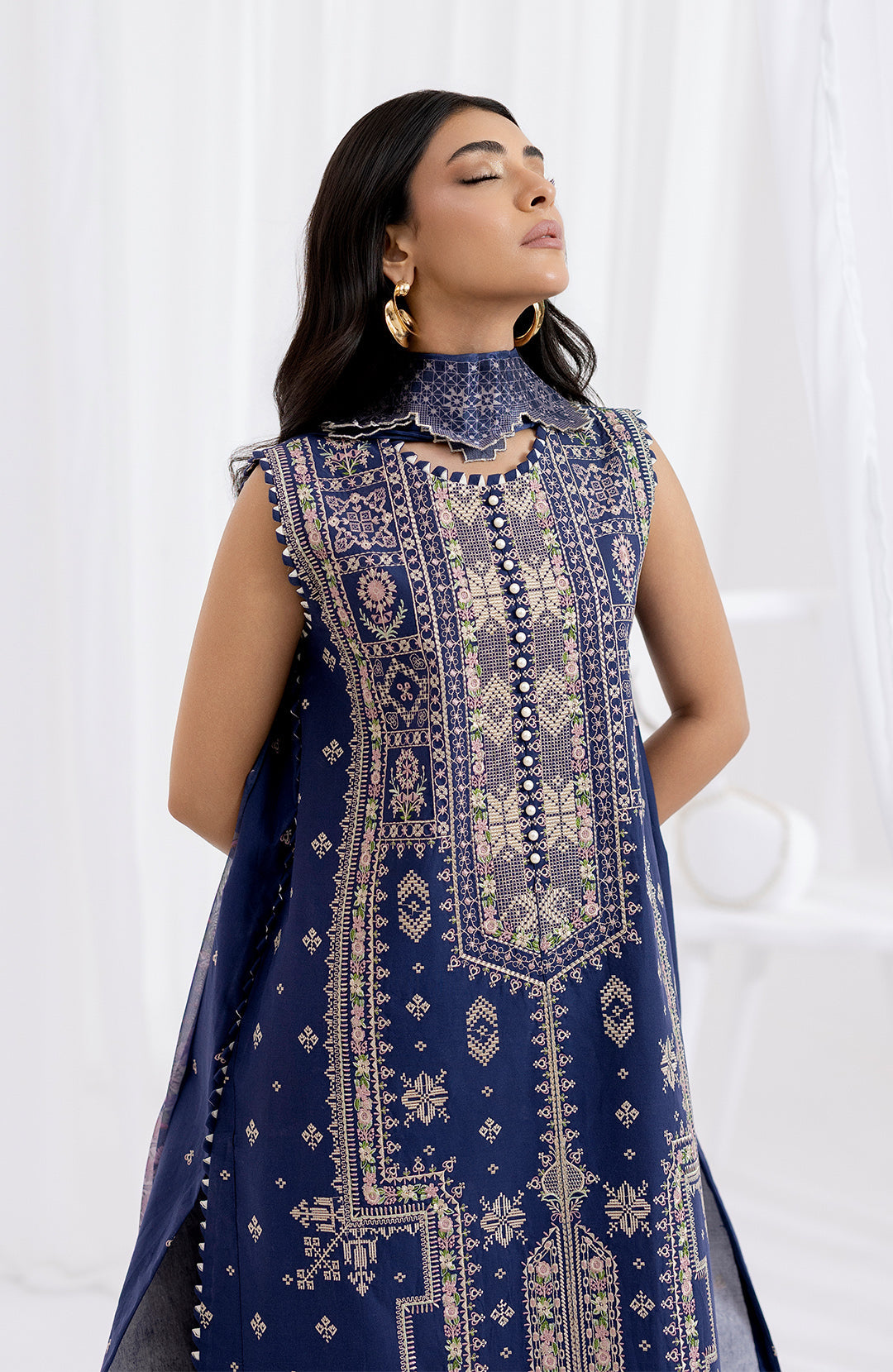 The Azura Lawn Unstitched features a captivating blend of traditional and contemporary elements. The intricate embroidery, meticulously executed with delicate threads, adds a touch of sophistication to the design. The vibrant colors and patterns used in the embroidery create a visually stunning effect, making the ensemble perfect for special occasions. The silhouette of the Azura is both flattering and comfortable, ensuring that the wearer feels confident and graceful. The Lawn fabric, known for its breathability and softness, provides a luxurious feel against the skin, making it ideal for the warmer months.