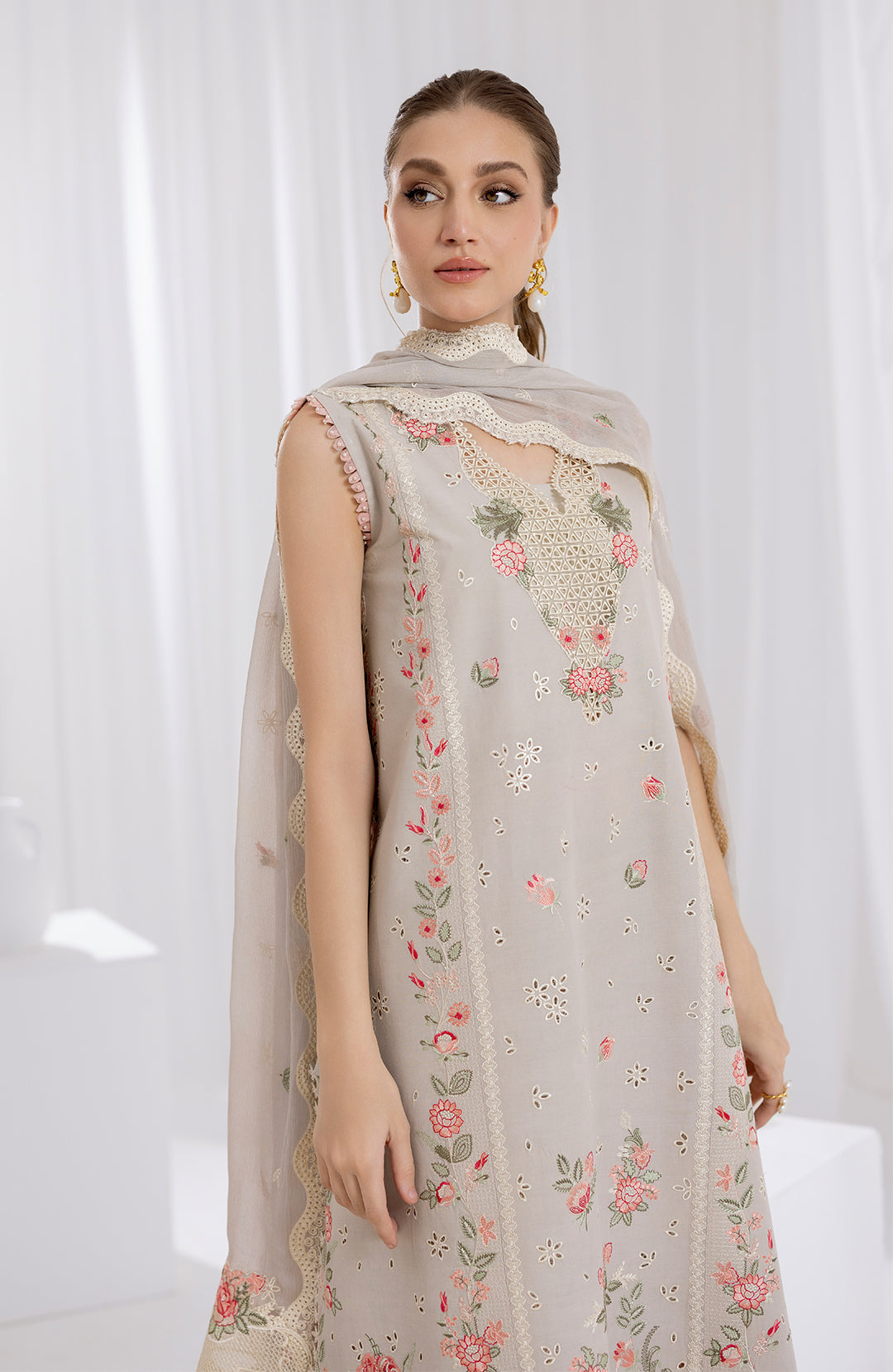 The Bianca Lawn Unstitched features a captivating blend of traditional and contemporary elements. The intricate embroidery, meticulously executed with delicate threads, adds a touch of sophistication to the design. The vibrant colors and patterns used in the embroidery create a visually stunning effect, making the ensemble perfect for special occasions. The silhouette of the Bianca is both flattering and comfortable, ensuring that the wearer feels confident and graceful. The Lawn fabric, known for its breathability and softness, provides a luxurious feel against the skin, making it ideal for the warmer months.