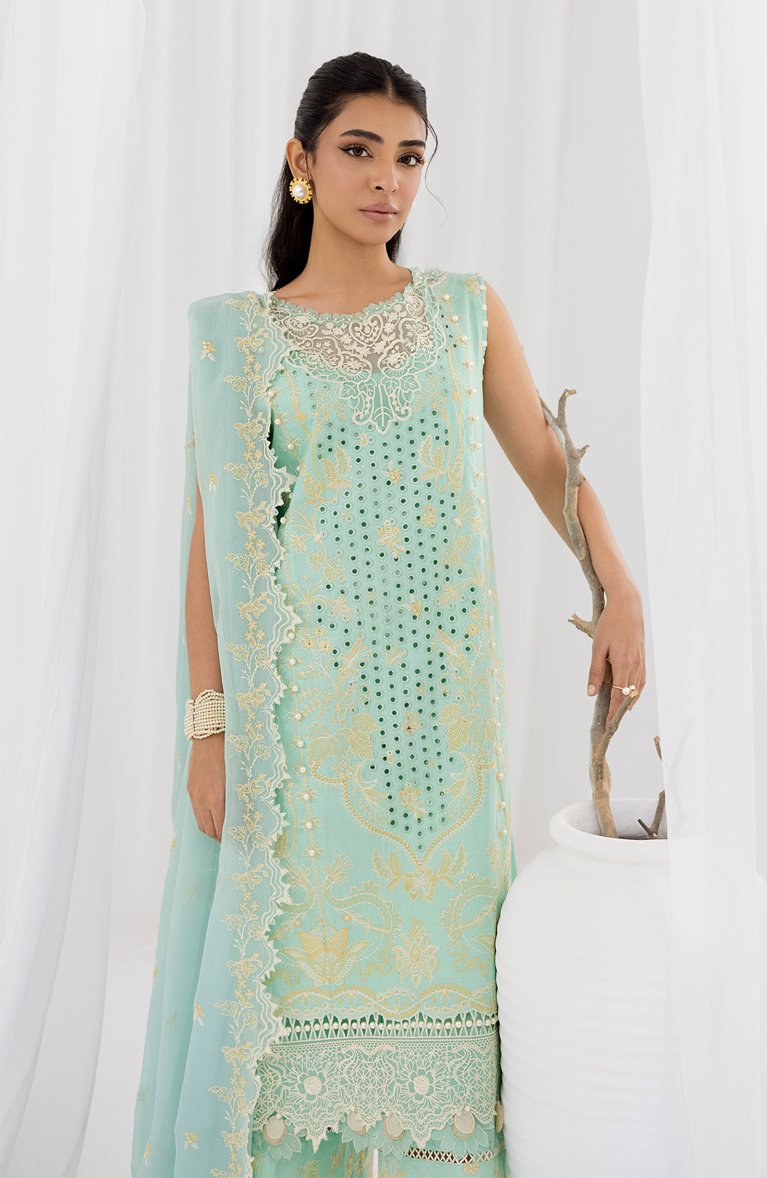 The Nevida Lawn Unstitched features a captivating blend of traditional and contemporary elements. The intricate embroidery, meticulously executed with delicate threads, adds a touch of sophistication to the design. The vibrant colors and patterns used in the embroidery create a visually stunning effect, making the ensemble perfect for special occasions. The silhouette of the Nevida is both flattering and comfortable, ensuring that the wearer feels confident and graceful. The Lawn fabric, known for its breathability and softness, provides a luxurious feel against the skin, making it ideal for the warmer months.