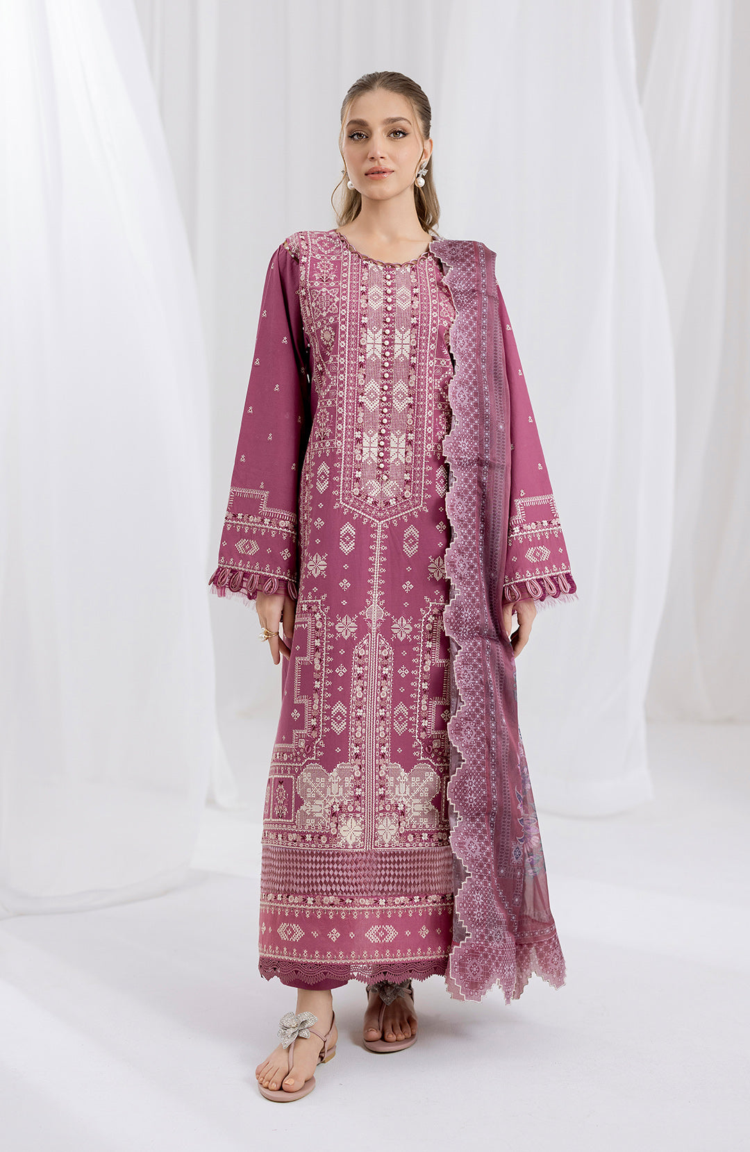 The Violette Lawn Unstitched features a captivating blend of traditional and contemporary elements. The intricate embroidery, meticulously executed with delicate threads, adds a touch of sophistication to the design. The vibrant colors and patterns used in the embroidery create a visually stunning effect, making the ensemble perfect for special occasions. The silhouette of the Violette is both flattering and comfortable, ensuring that the wearer feels confident and graceful. The Lawn fabric, known for its breathability and softness, provides a luxurious feel against the skin, making it ideal for the warmer months.