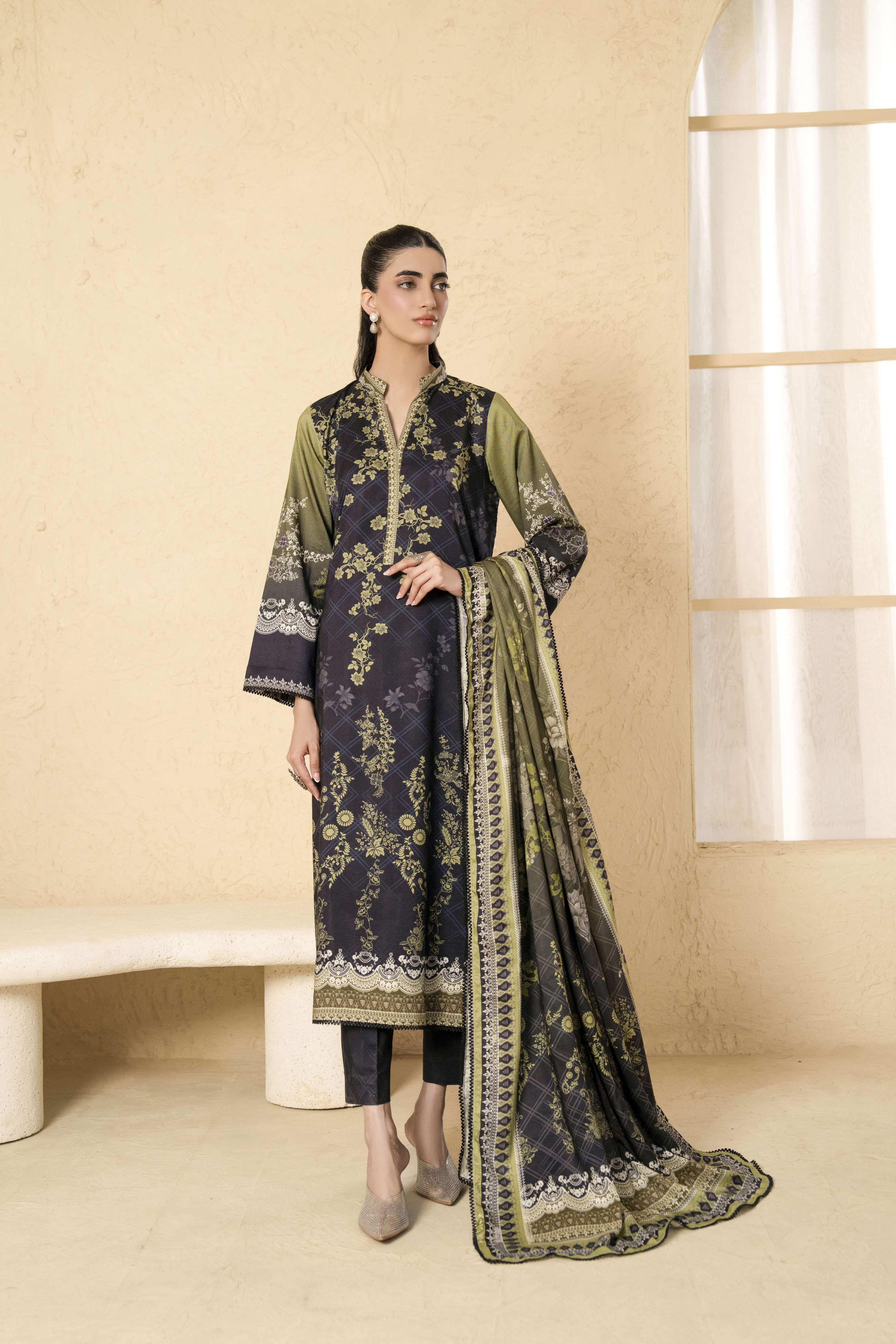 The Resham Lumen - D931 Linen Unstitched features a captivating blend of traditional and contemporary elements. The intricate embroidery, meticulously executed with delicate threads, adds a touch of sophistication to the design. The vibrant colors and patterns used in the embroidery create a visually stunning effect, making the ensemble perfect for special occasions. The silhouette of the Resham Lumen - D931 is both flattering and comfortable, ensuring that the wearer feels confident and graceful. The Linen fabric, known for its breathability and softness, provides a luxurious feel against the skin, making it ideal for the warmer months.