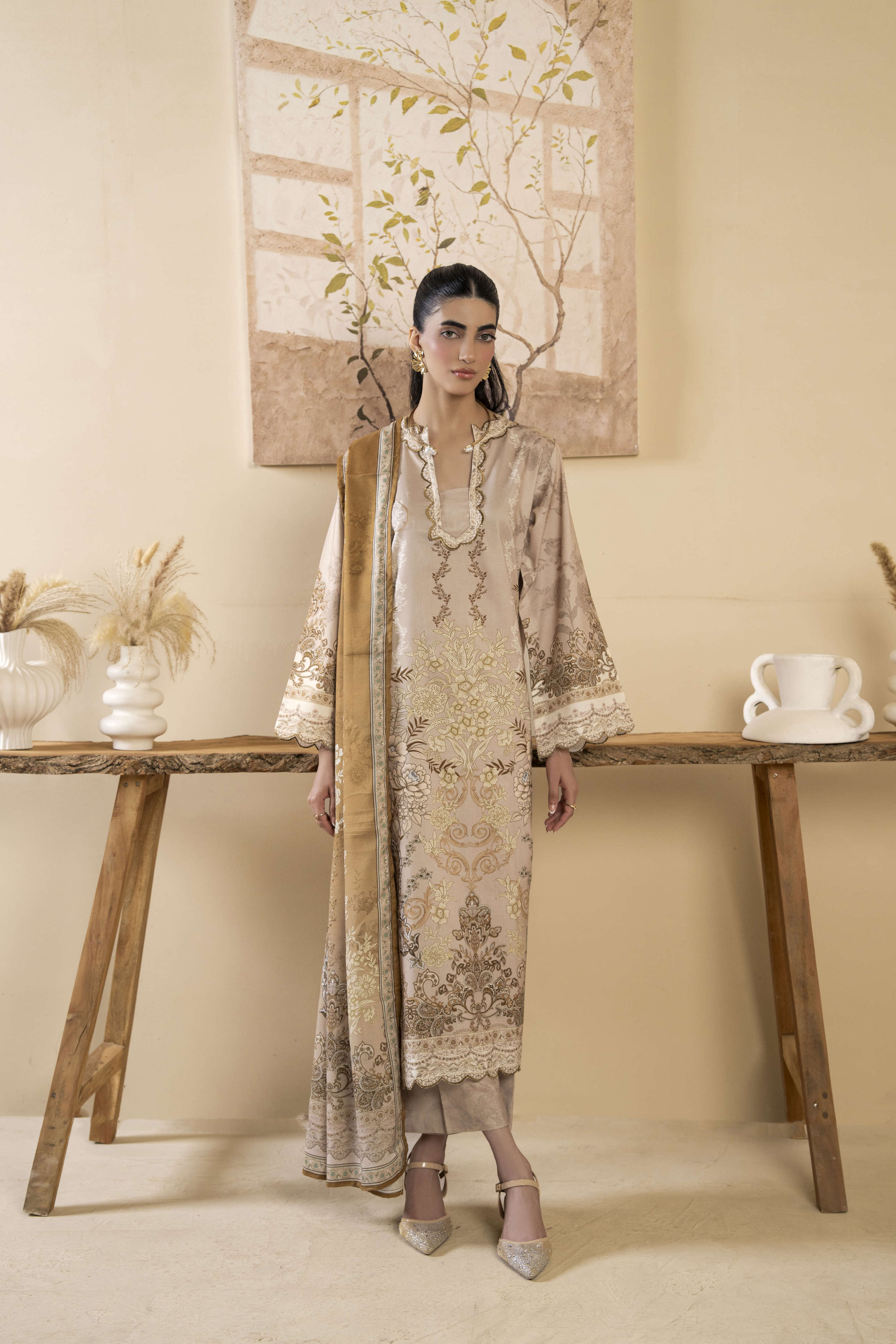 Firdous a renowned Pakistani fashion brand, has consistently captivated the hearts of fashion enthusiasts with its exquisite designs and impeccable craftsmanship. One such masterpiece that has garnered immense admiration is the Resham Lumen - D938 Linen Unstitched. This elegant ensemble, crafted from premium quality Linen fabric is a testament to Firdous commitment to timeless style and comfort.