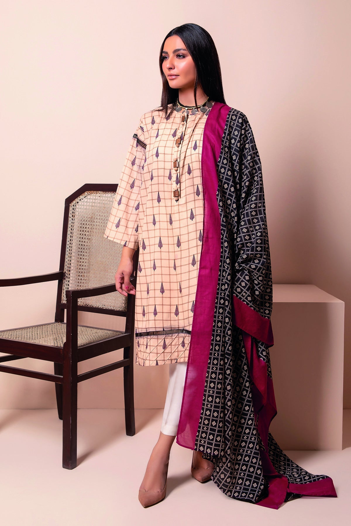 L22107 Beige Khaadi Online Spring Summer is Original Ladies Clothing Brand, and provides both Styles shalwar kameez suits and kurtis.