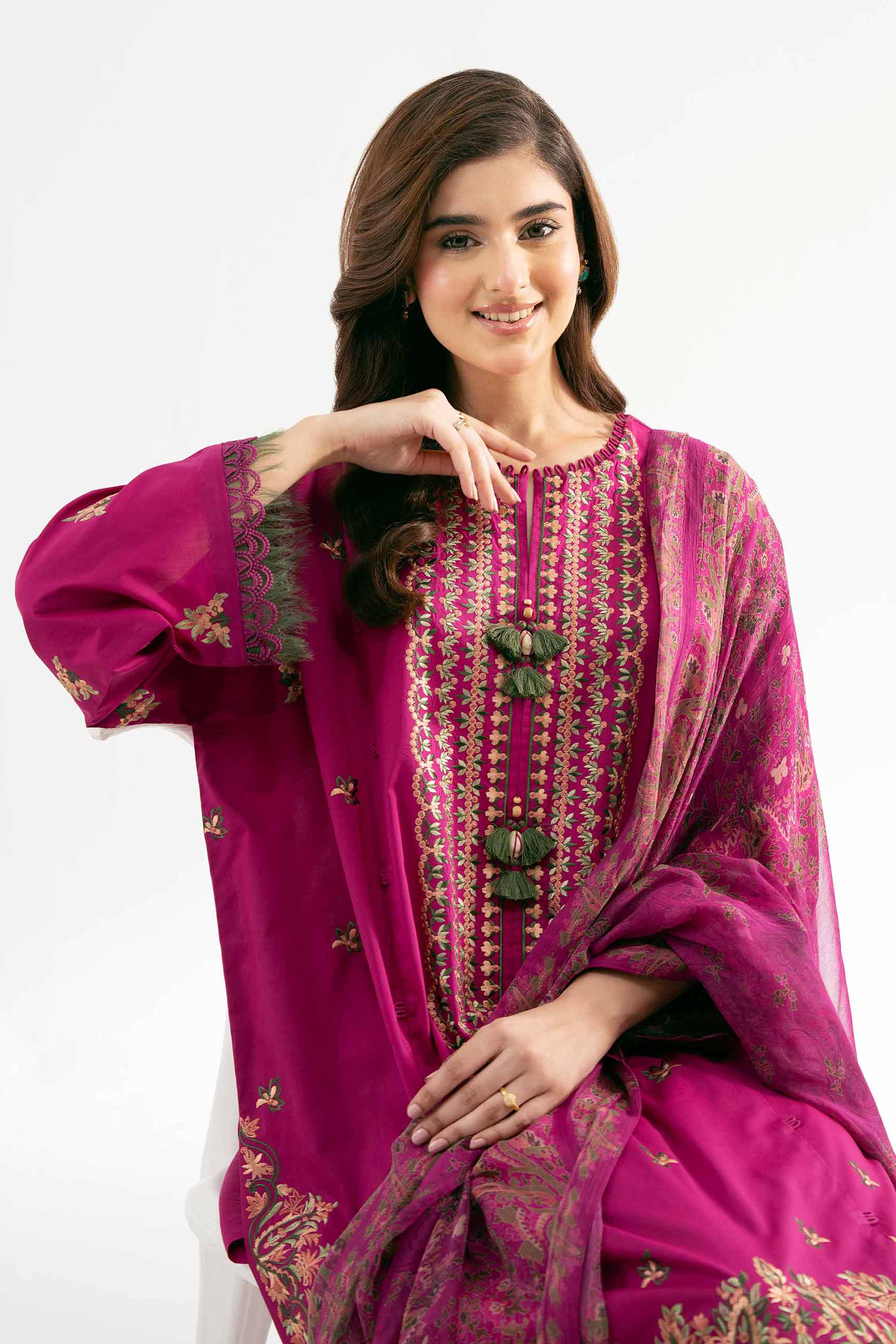 Nishat Linen 3 Piece - Jacquard Embroidered Suit - 42501823 Lawn Unstitched is typically part of the brand's Embroidered Eid Lawn Collection, a highly anticipated annual release that showcases the latest trends and designs. The Embroidered Eid Lawn Collection is renowned for its festive and vibrant aesthetic, and the 3 Piece - Jacquard Embroidered Suit - 42501823 embodies this spirit perfectly.