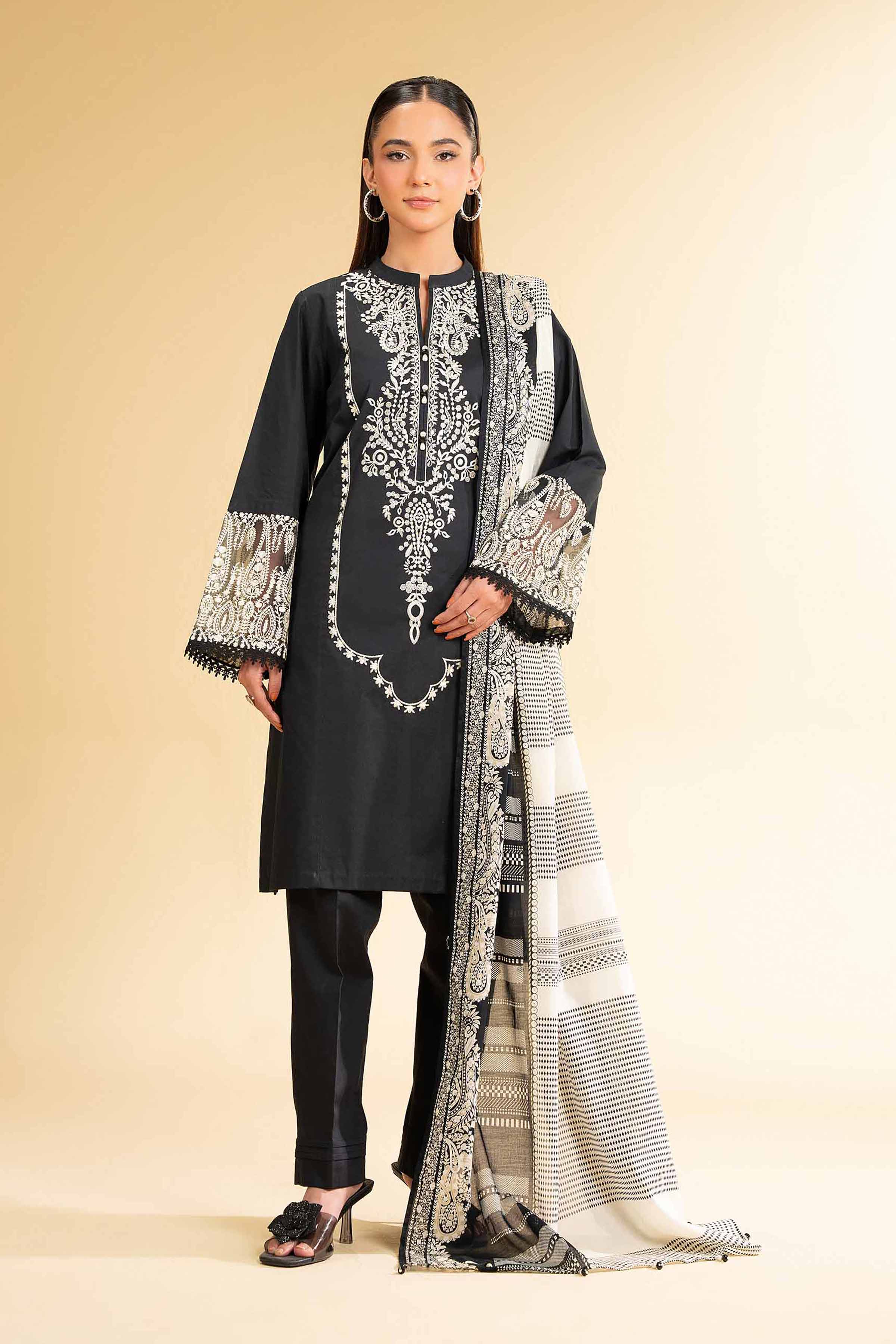 The 3 Piece - Printed Embroidered Suit - 42501657 Lawn Unstitched features a captivating blend of traditional and contemporary elements. The intricate embroidery, meticulously executed with delicate threads, adds a touch of sophistication to the design. The vibrant colors and patterns used in the embroidery create a visually stunning effect, making the ensemble perfect for special occasions. The silhouette of the 3 Piece - Printed Embroidered Suit - 42501657 is both flattering and comfortable, ensuring that the wearer feels confident and graceful. The Lawn fabric, known for its breathability and softness, provides a luxurious feel against the skin, making it ideal for the warmer months.