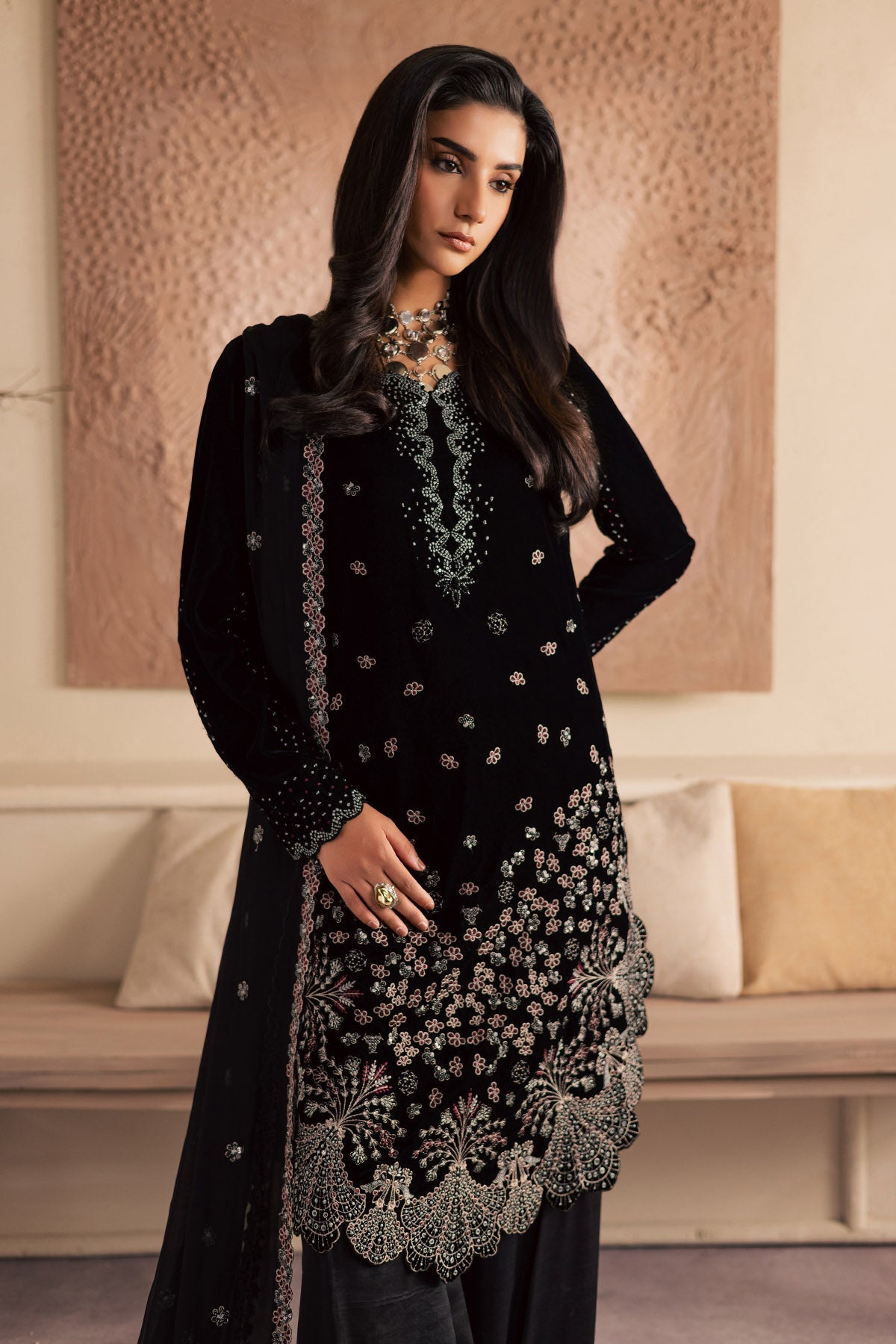 Nureh a renowned Pakistani fashion brand, has consistently captivated the hearts of fashion enthusiasts with its exquisite designs and impeccable craftsmanship. One such masterpiece that has garnered immense admiration is the NP-693 Velvet Stitched. This elegant ensemble, crafted from premium quality Velvet fabric is a testament to Nureh commitment to timeless style and comfort.