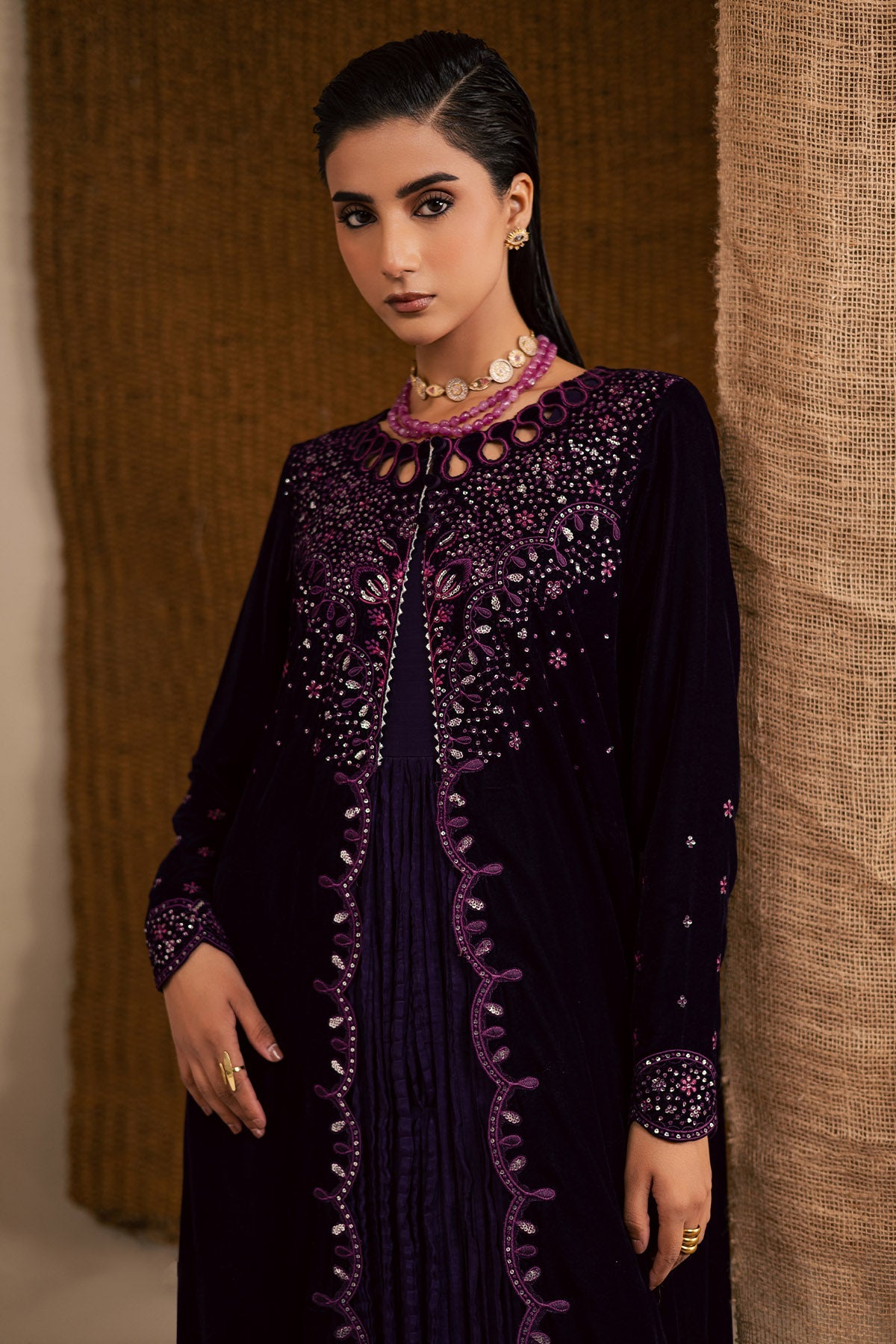Nureh a renowned Pakistani fashion brand, has consistently captivated the hearts of fashion enthusiasts with its exquisite designs and impeccable craftsmanship. One such masterpiece that has garnered immense admiration is the NP-714 Velvet Stitched. This elegant ensemble, crafted from premium quality Velvet fabric is a testament to Nureh commitment to timeless style and comfort.
